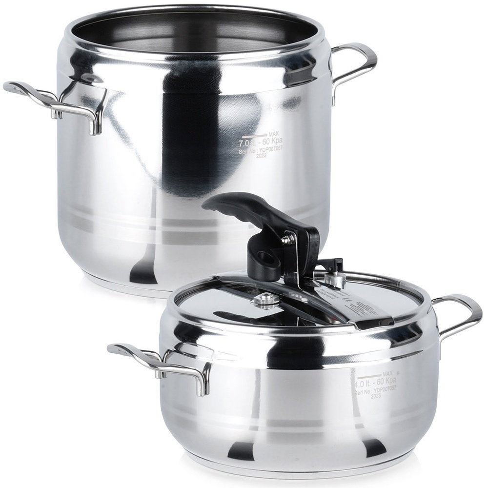 2x Szybkowar Orion Profi Stalowy Garnek Ciśnieniowy Szybkie Gotowanie 4+7L