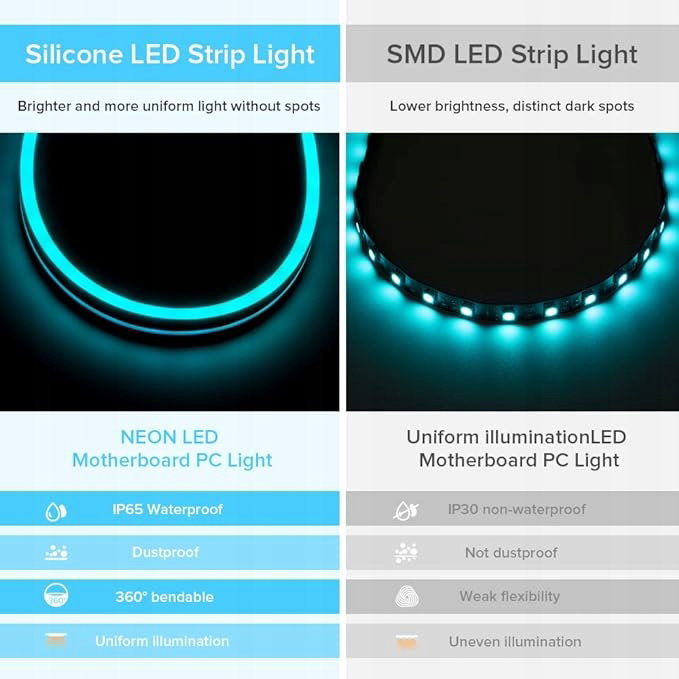 ✔️ Łatwy montaż i możliwość cięcia – W zestawie znajduje się 12 mocnych klipsów montażowych z dwustronną taśmą klejącą, co sprawia, że instalacja jest szybka i bezproblemowa. Możesz łatwo przyciąć pasek do dowolnej długości lub wydłużyć go, dodając więcej pasków, co daje pełną kontrolę nad dopasowaniem do każdej przestrzeni – od wnętrza komputera po dekoracje domowe.