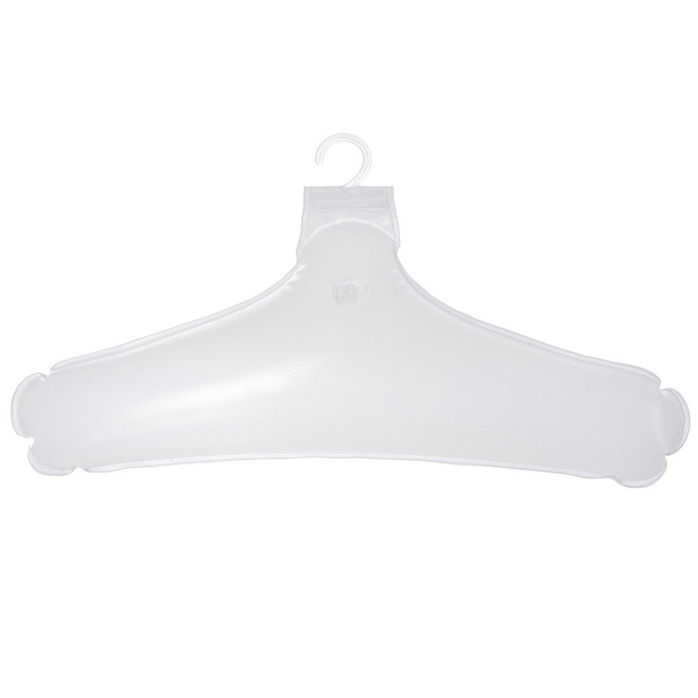 Nadmuchiwane wieszaki na ubrania - Zestaw 2 szt. uniwersalnych wieszaków na ubrania w kolorze białym, które świetnie sprawdzą się zarówno w domu, jak i podczas podróży. Każdy wieszak po nadmuchaniu ma wymiary 45 x 10 x 21 cm.