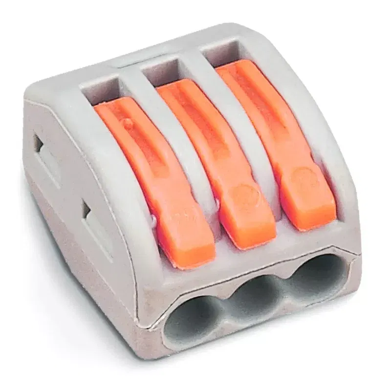 Instalacyjna szybkozłączka trzy-przewodowa znajduje zastosowanie przy łączeniu przewodów w puszkach elektroinstalacyjnych, technice oświetleniowej oraz w szafkach rozdzielczych i innych pracach elektroinstalacyjnych. Do łączenia przewodów linkowych i drutowych. Opakowanie zawiera dwie złączki.