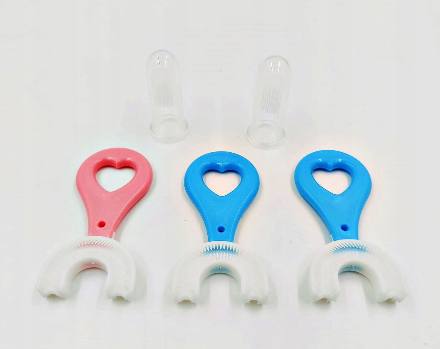 - 3 x szczoteczki do zębów w kształcie litery U – Idealnie dopasowane do kształtu jamy ustnej dzieci, ułatwiają skuteczne czyszczenie każdego zakamarka zębów.