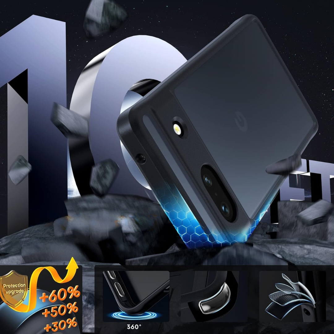 TOCOL Etui 3 w 1 do Google Pixel 7a, z 2 szt. hartowanych ochraniaczy ekranu [ulepszona pełna ochrona aparatu] [upadek klasy wojskowej] półprzezroczysty matowy tył, antypoślizgowa obudowa do Pixel 7a.