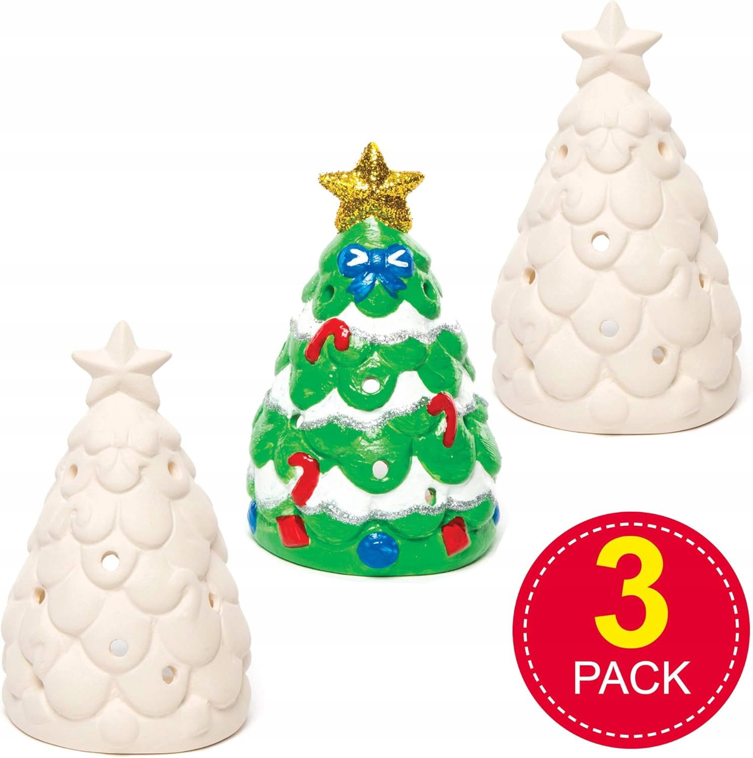 Ceramiczny świecznik na podgrzewacze do pomalowania choinka Baker Ross - zestaw 3 sztuki