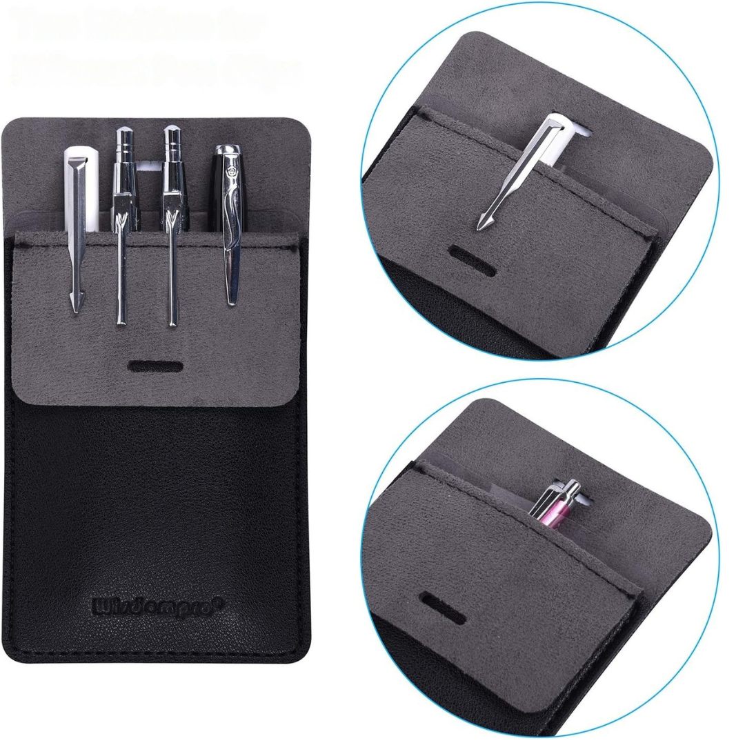 Wisdompro Pocket Protector, zestaw 3 sztuk, etui na długopisy z wytrzymałej skóry ekologicznej PU, do koszul, fartuchów laboratoryjnych, spodni – wielofunkcyjne – mieści długopisy, wskaźniki, ołówki i notatki – czarne.