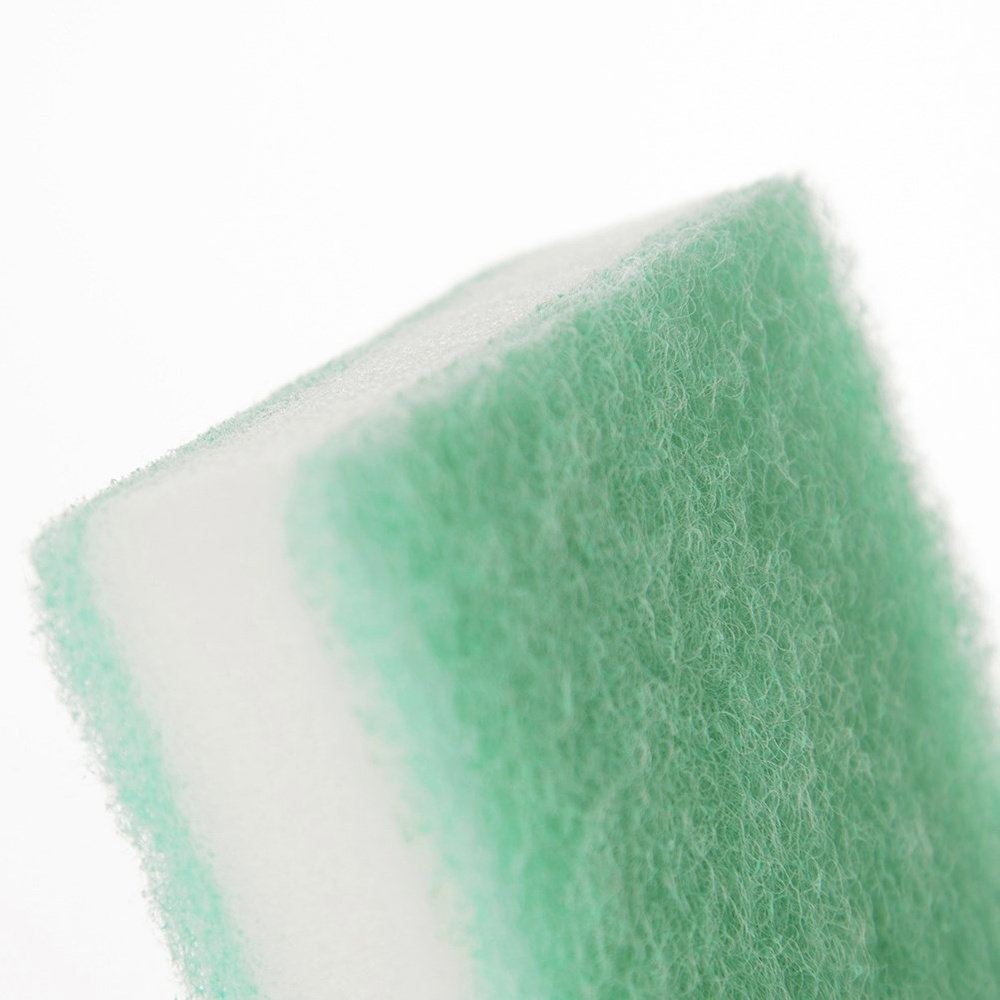 Trójwarstwowa gąbka kuchenna pozwoli na czyszczenie naczyń i powierzchni kuchennych bez rysowania powierzchni. Wysoka absorpcja umożliwia ekonomiczne użycie detergentów, a trwałe materiały zapewniają długotrwałe użytkowanie.