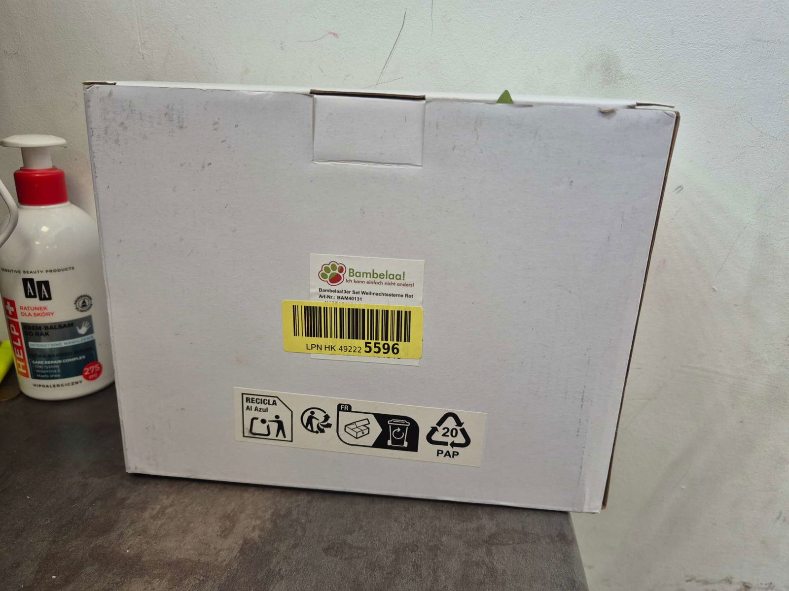 W skład zestawu wchodzą trzy sztuczne gwiazdy, każda o wymiarach około 17 cm, idealne do ozdobienia okna lub innego wybranego miejsca.