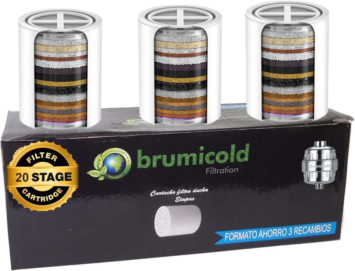 Brumicold Savings Ducha zestaw 3 wkładów zamiennych z filtrem 12 stopni, usuwa chlor, kamień i metale ciężkie, kompatybilny z filtrami 6,8, 10 stopni