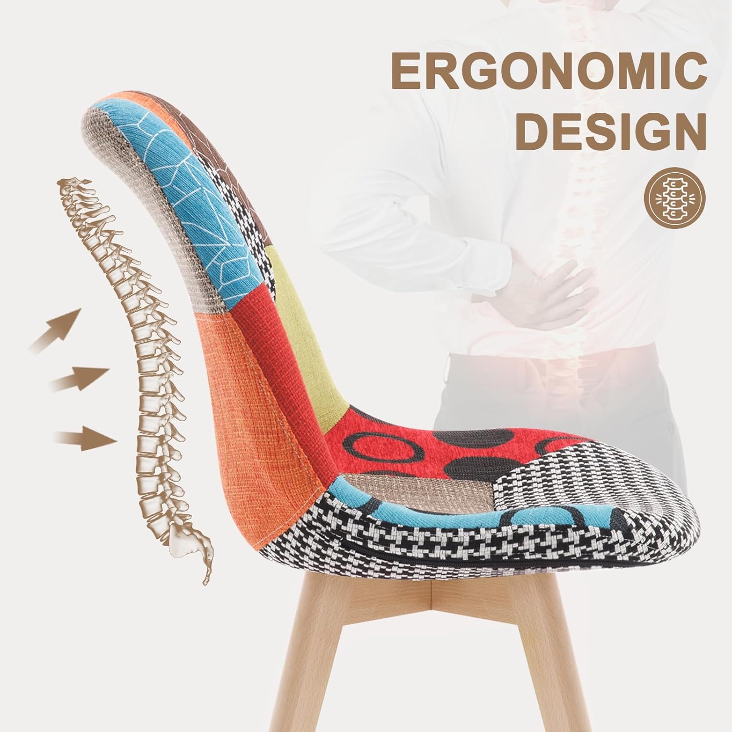 - NIEZWYKLE WYGODNE: Dzięki zakrzywionemu oparciu, to krzesło do jadalni jest ergonomicznie zaprojektowane i zapewnia doskonałe podparcie pleców. Siedzisko wyściełane pianką o wysokiej gęstości skutecznie łagodzi zmęczenie. Powierzchnia pokryta jest lnem patchworkowym, który jest bardzo oddychający.