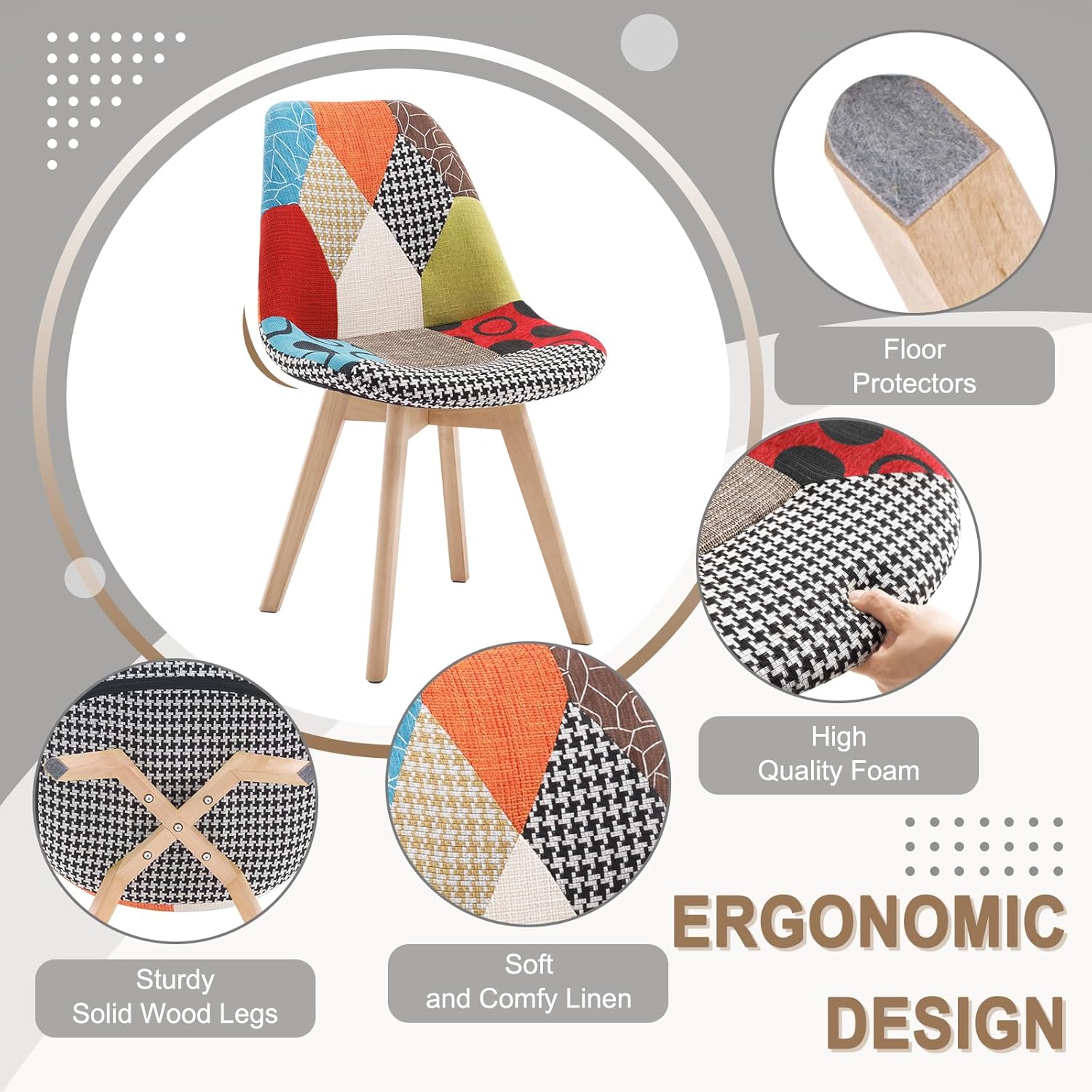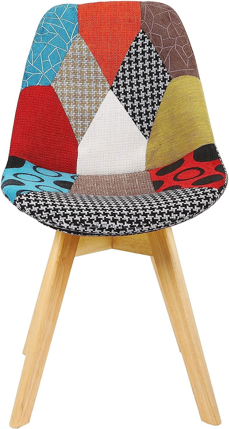 - WIELOFUNKCYJNE KRZESŁO: Patchworkowy design i nogi z litego drewna idealnie łączą styl skandynawski i rustykalny. Z łatwością spełni Twoje potrzeby. Jego rozsądne rozmiary idealnie sprawdzą się w jadalni, salonie lub pokoju rekreacyjnym. Można go również używać jako fotela do makijażu w sypialni lub jako fotela biurowego w gabinecie.
