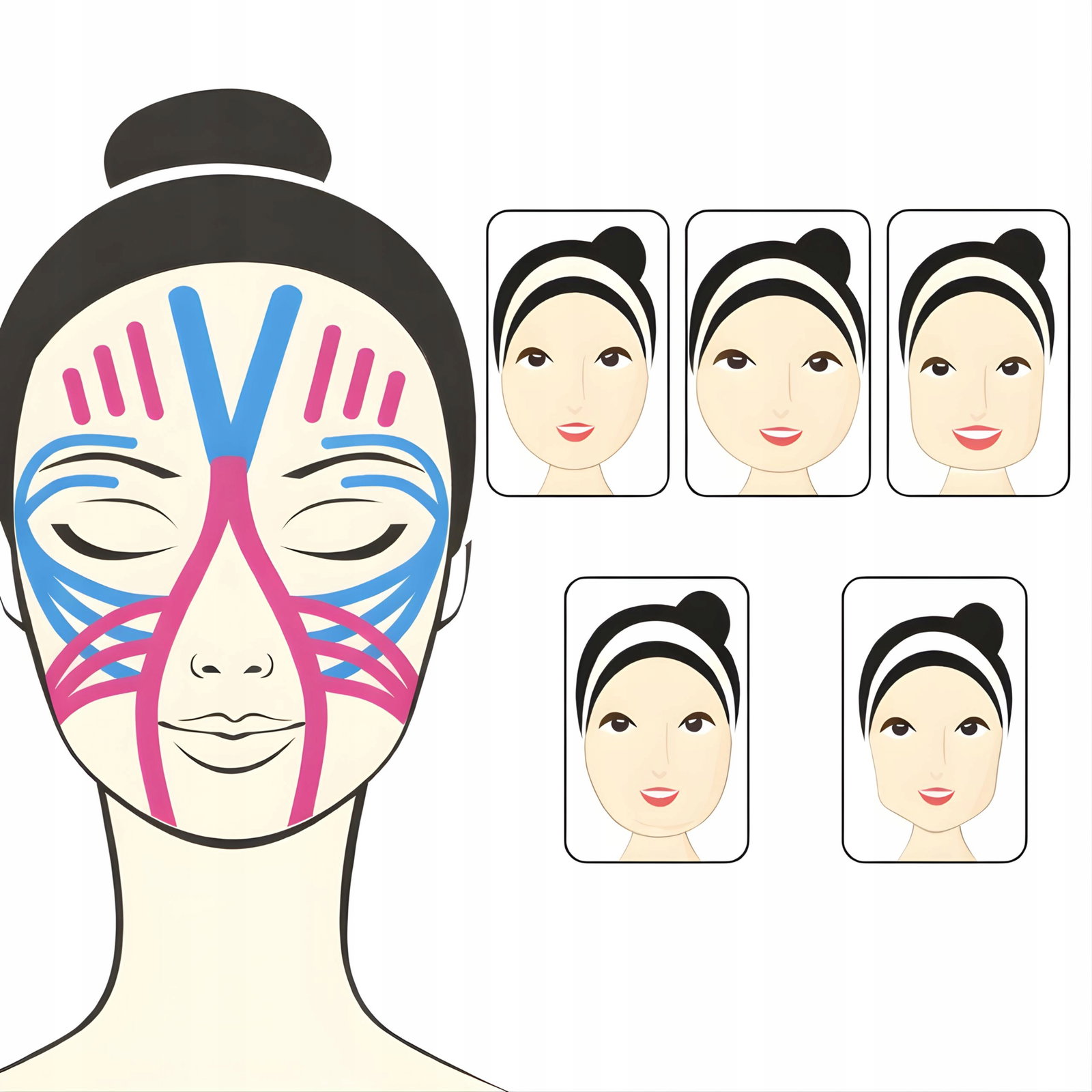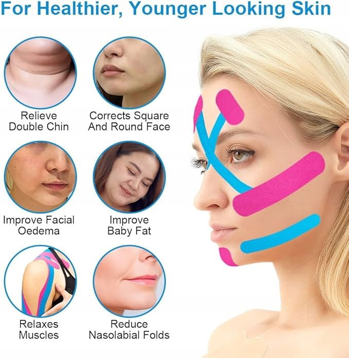 Szeroki zakres zastosowań: ta taśma kinezjologiczna do twarzy nadaje się do zmarszczek na czole, zmarszczek na czole, dolnych powiek, zmarszczek na nosie i wargach, zmarszczek pod oczami, kurzych łapek, zmarszczek w jamie ustnej, zmarszczek na szyi, podwójnego podbródka itp. Ta taśma kinezjologiczna do twarzy może być używana nie tylko do ujędrnienia skóry i redukcji zmarszczek, ale może być również stosowana jako taśma do ćwiczeń w celu rozluźnienia mięśni.