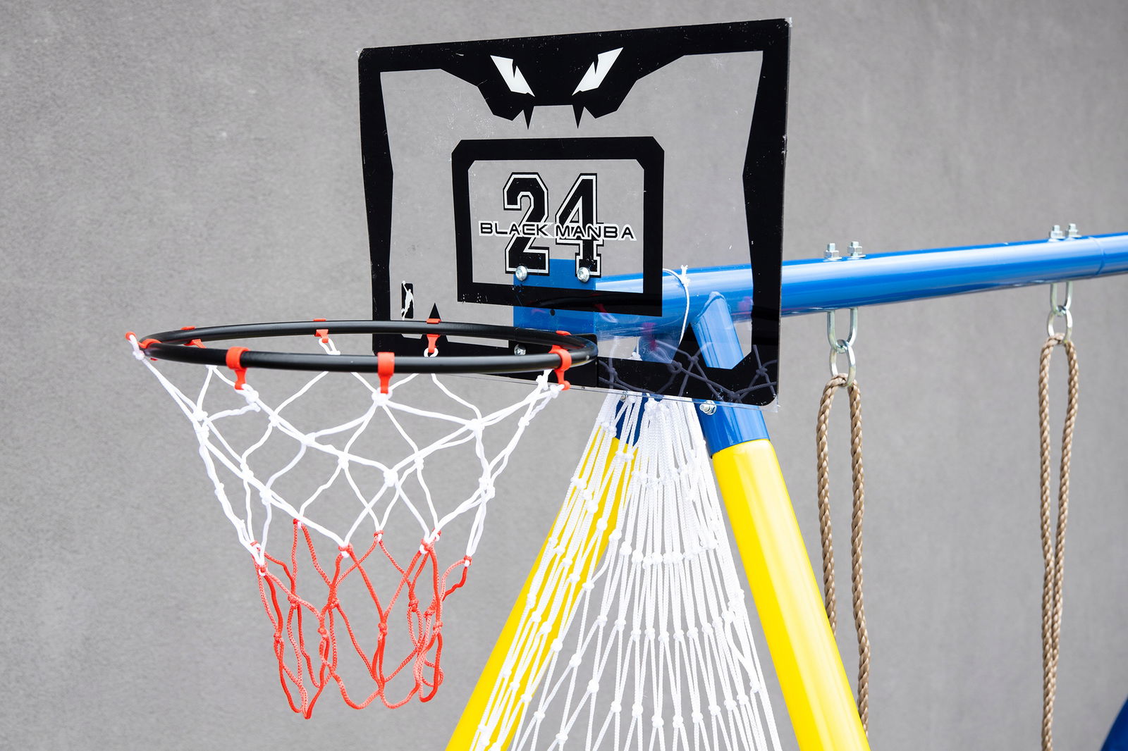 Dodatkowo, nasza huśtawka została wyposażona w kosz do koszykówki.