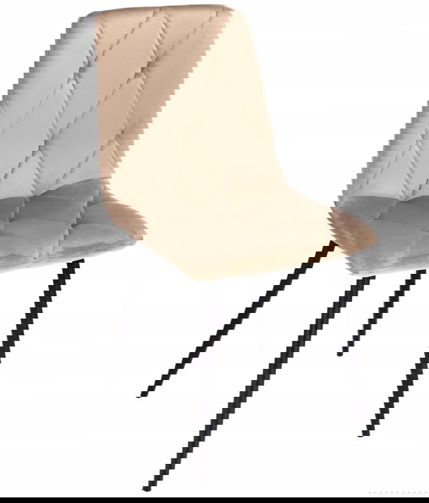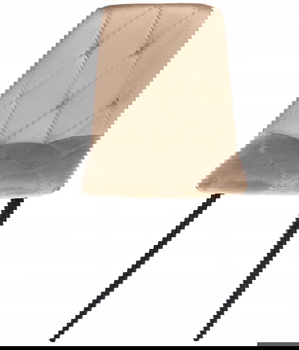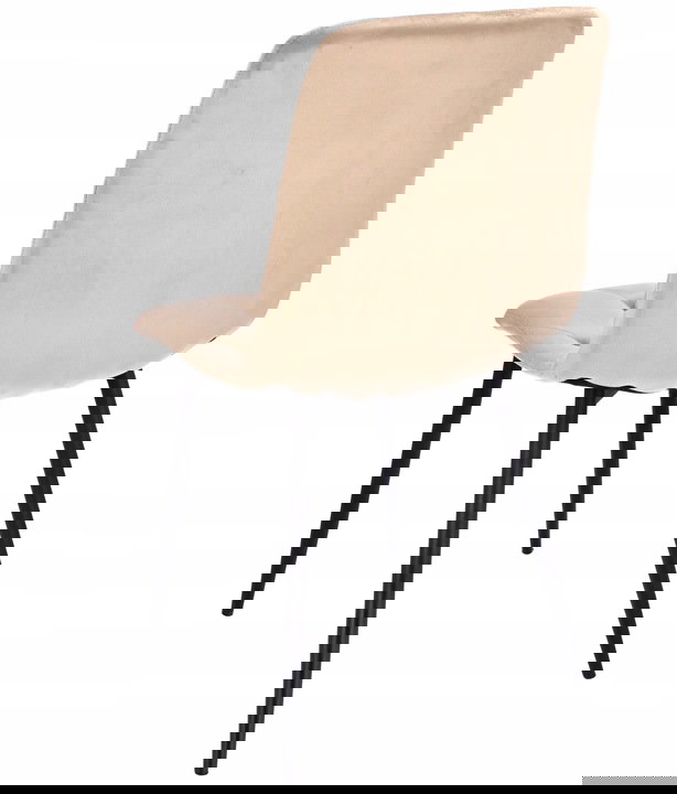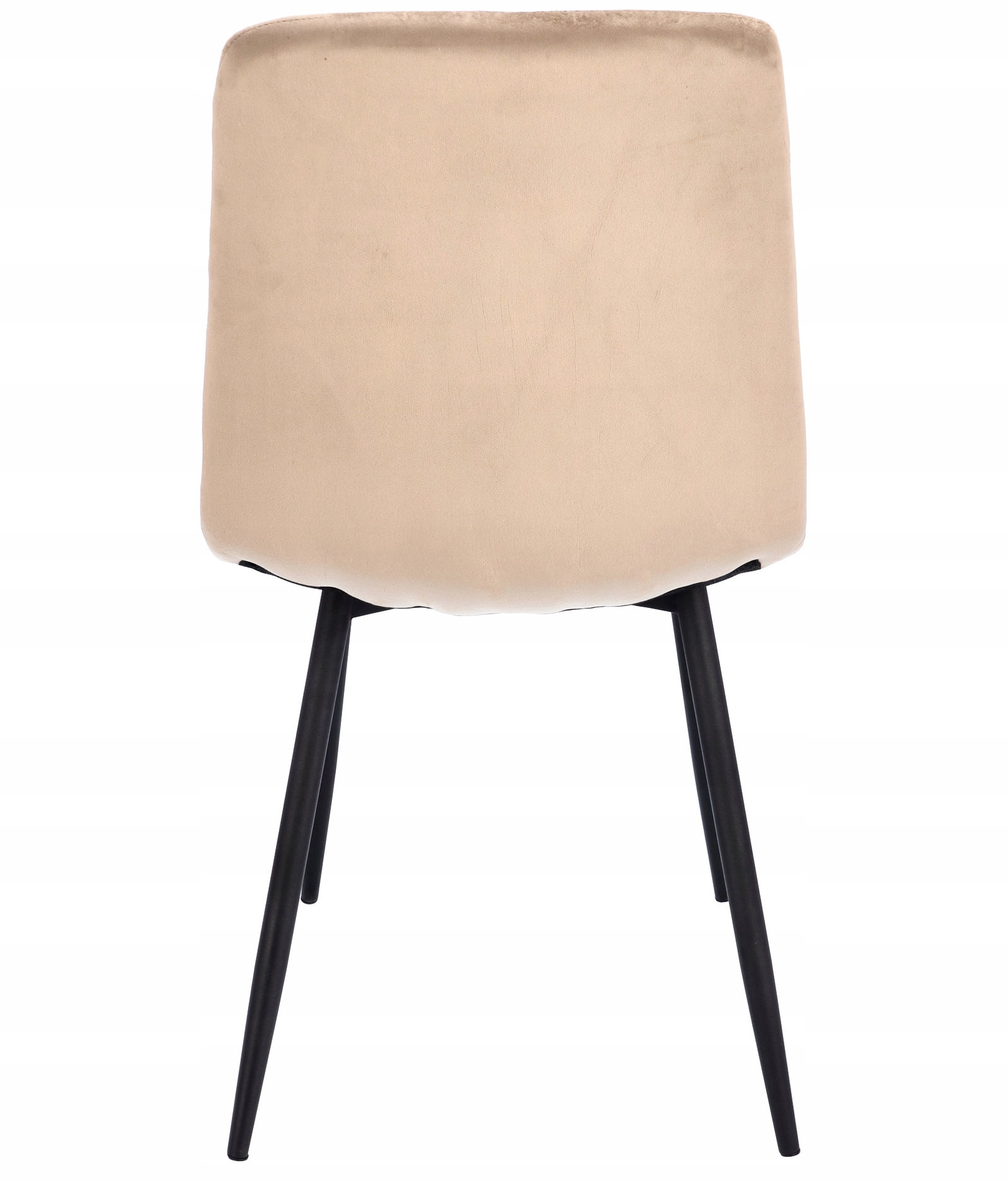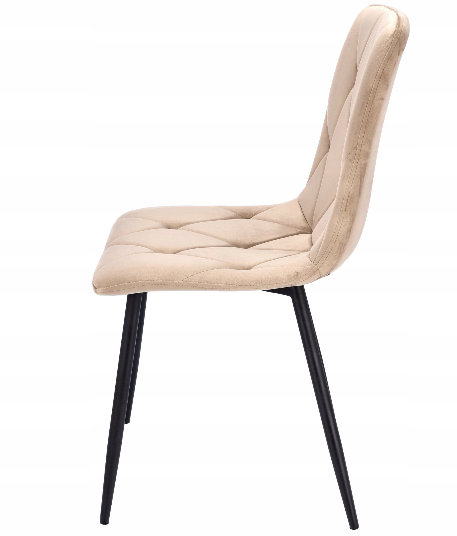 Krzesła tapicerowane są welurem, a po wewnętrznej stronie pikowane regularnymi przeszyciami w romby. Wysokie i smukłe nóżki w czarnym kolorze wyglądają bardzo szykownie oraz gwarantują idealną stabilność.