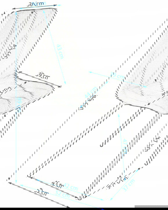 Wysokość siedziska: 47 cm Szerokość siedziska: 44 cm Głębokość siedziska: 39 cm