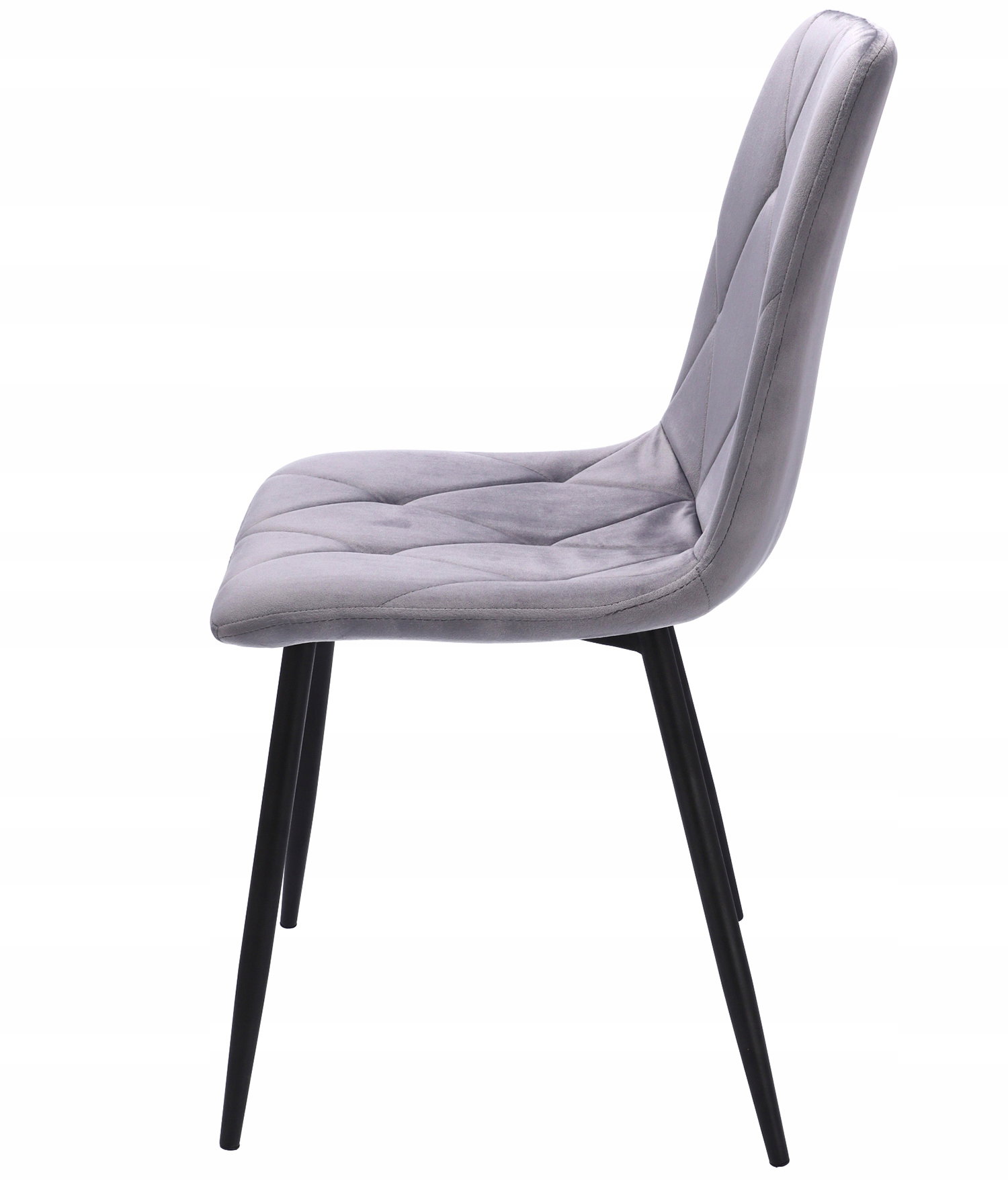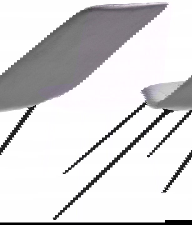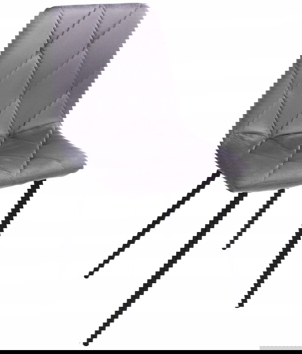 Krzesła tapicerowane są welurem, a po wewnętrznej stronie pikowane regularnymi przeszyciami w romby. Wysokie i smukłe nóżki w czarnym kolorze wyglądają bardzo szykownie oraz gwarantują idealną stabilność.