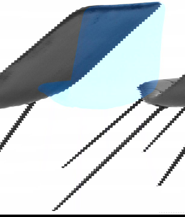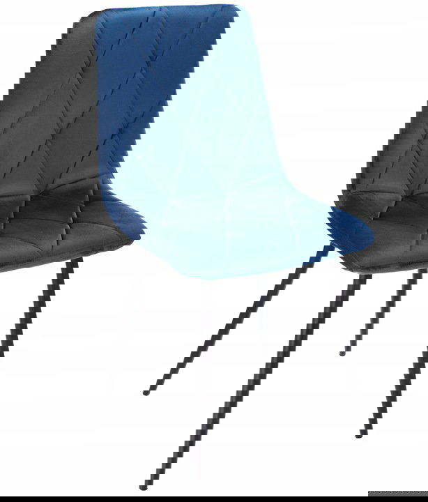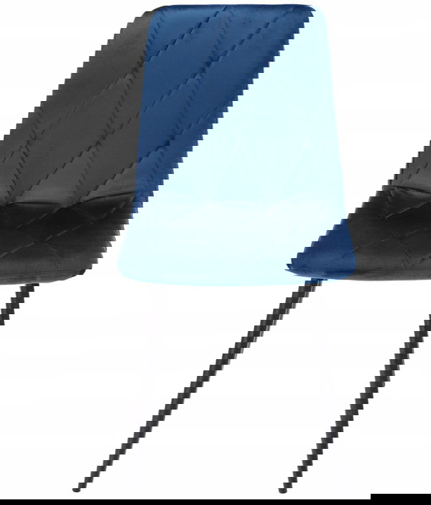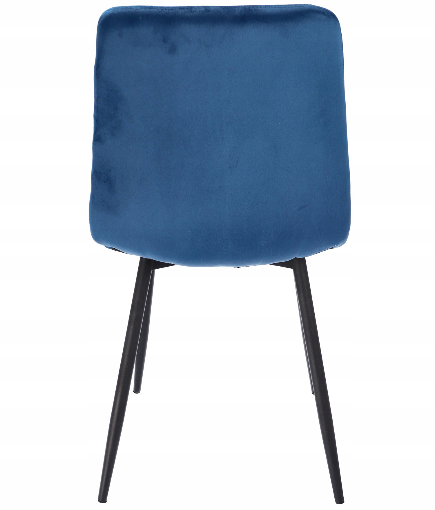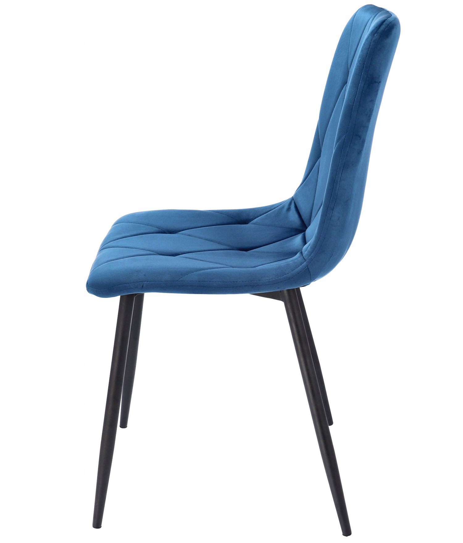 Krzesła tapicerowane są welurem, a po wewnętrznej stronie pikowane regularnymi przeszyciami w romby. Wysokie i smukłe nóżki w czarnym kolorze wyglądają bardzo szykownie oraz gwarantują idealną stabilność.