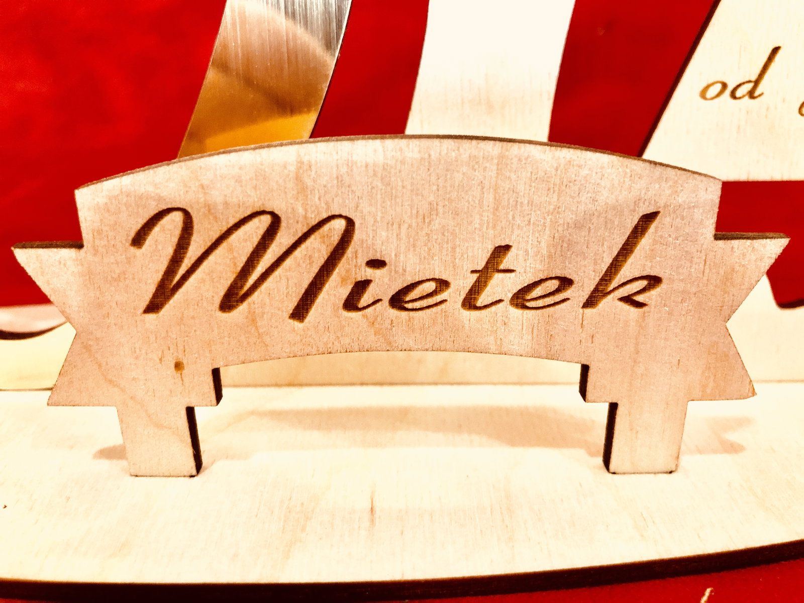 Na podstawie swoje miejsce znalazła tabliczka z imieniem solenizanta.