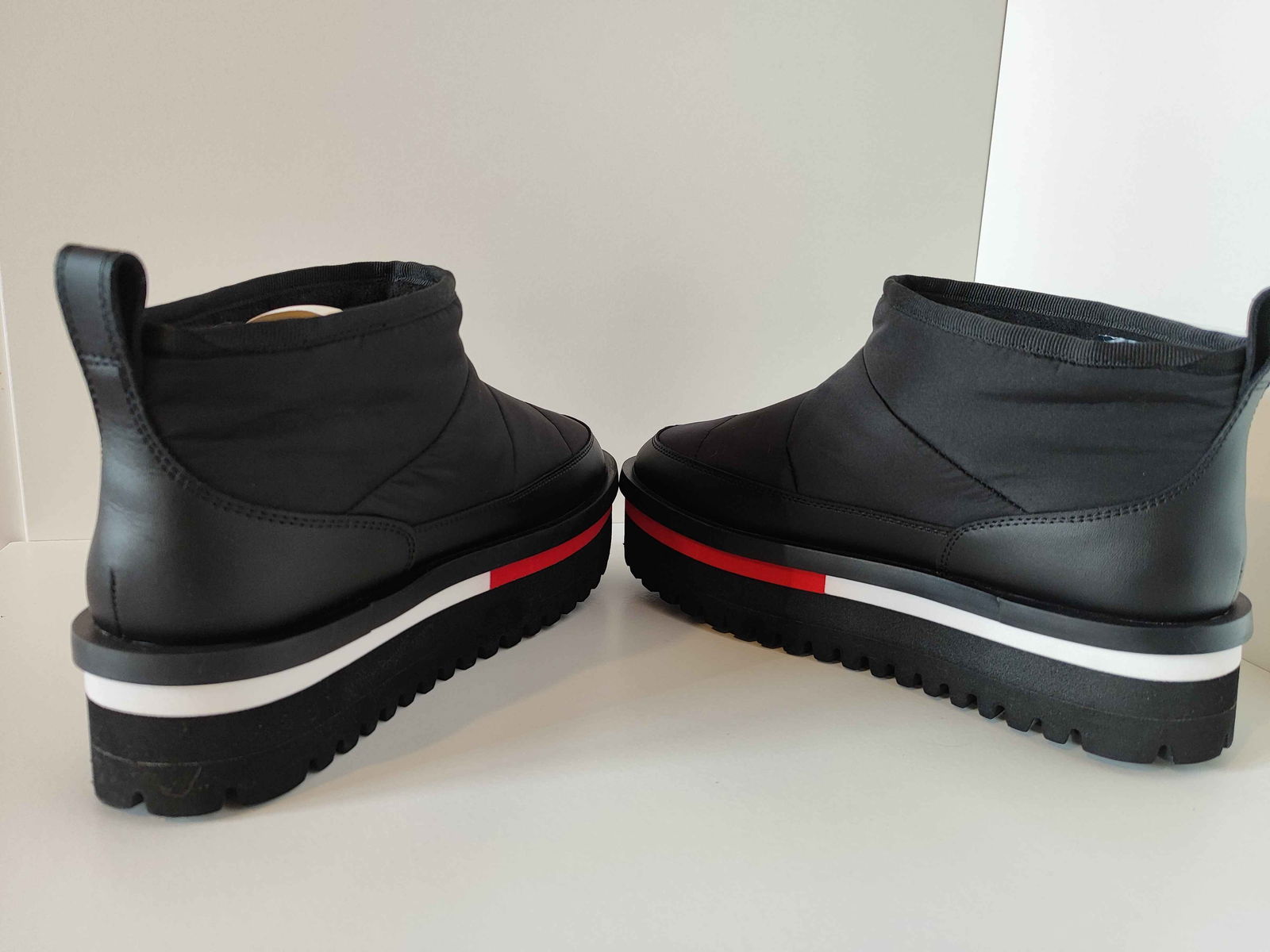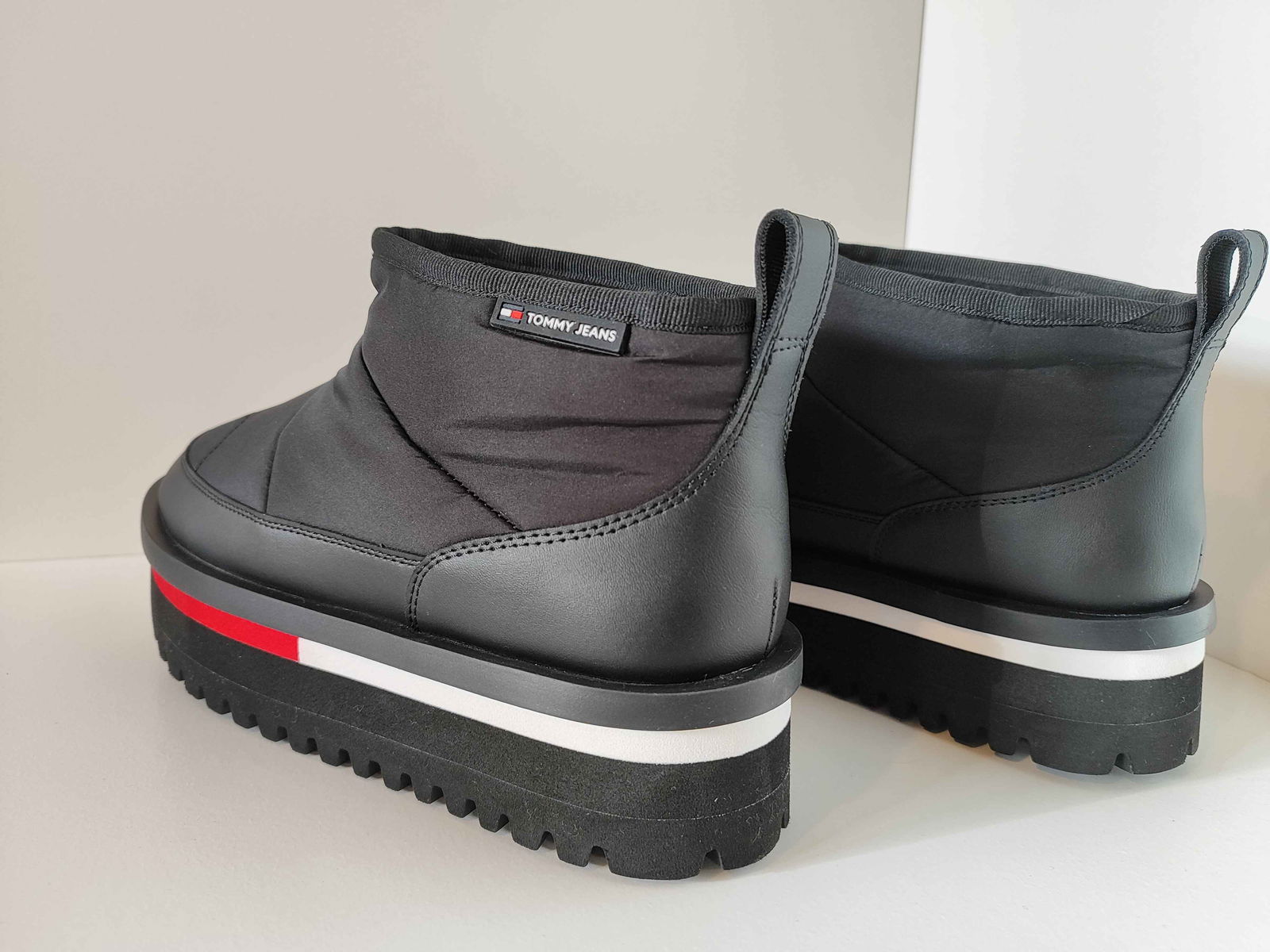 Tommy Jeans Śniegowce Tjw Nylon Flatform Boot Wl Damskie Czarne Wsuwane 40