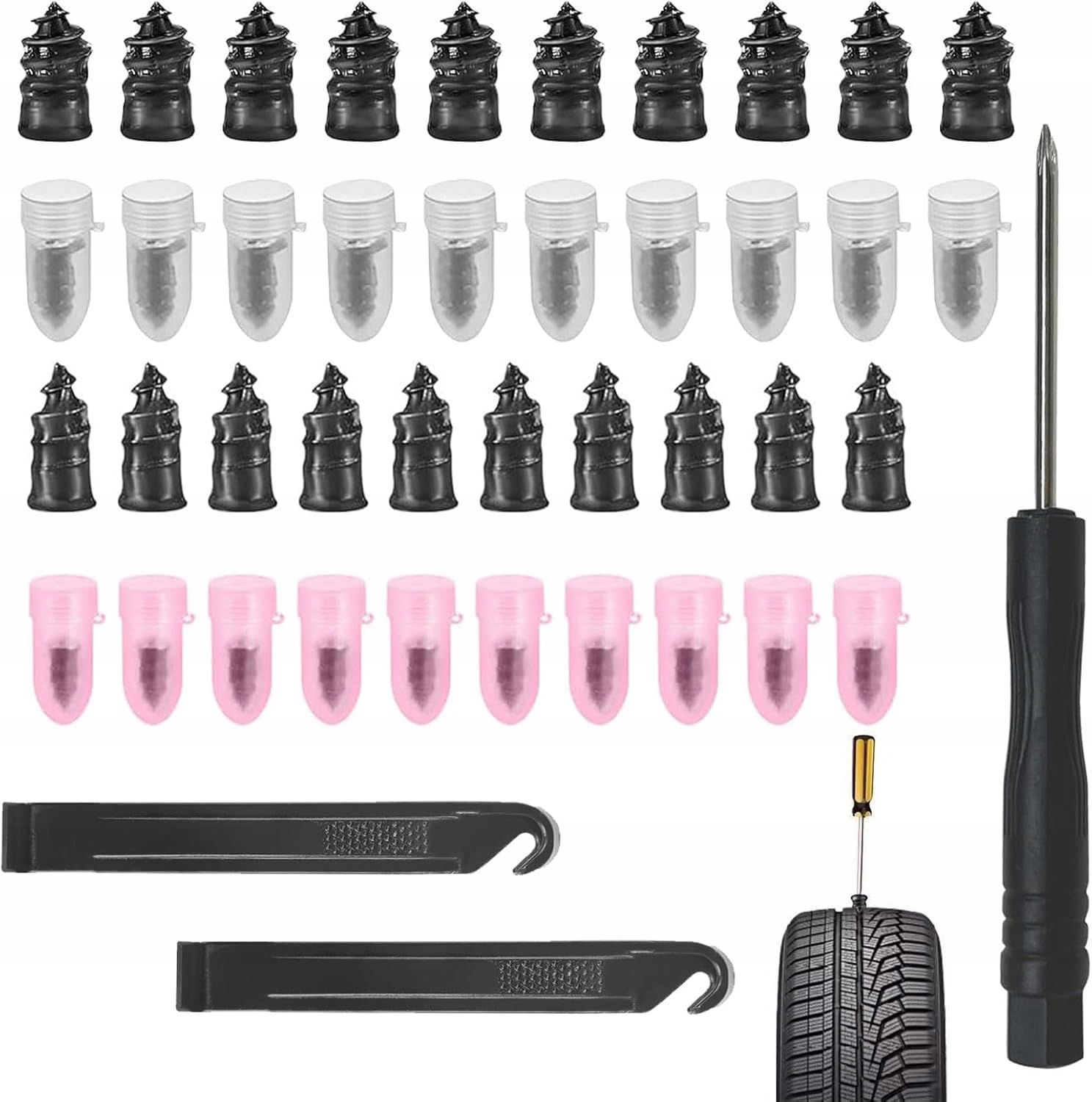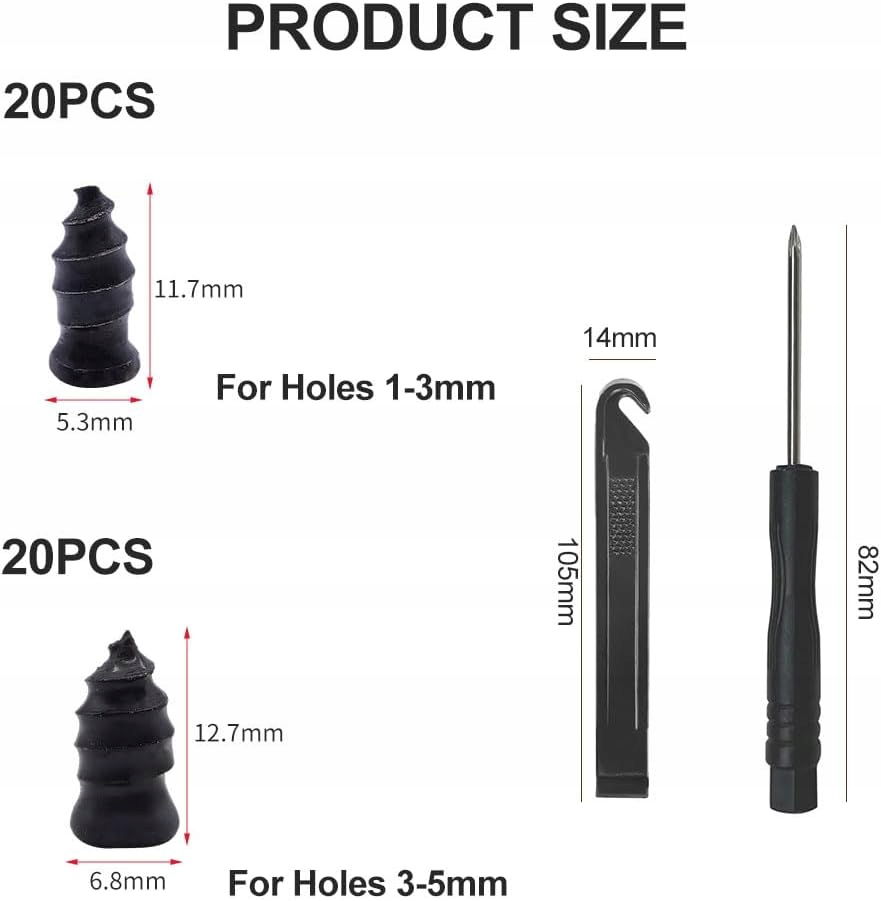 - Wysoka jakość: nasze śruby do opon odpowiadają najnowszym uszczelniaczom do opon samochodów osobowych, rowerów i ciężarówek. Są odporne na niemal wszystkie ostre przedmioty na drodze. Dzięki naszym zestawom awaryjnym masz swobodę i możesz bezpiecznie podróżować.