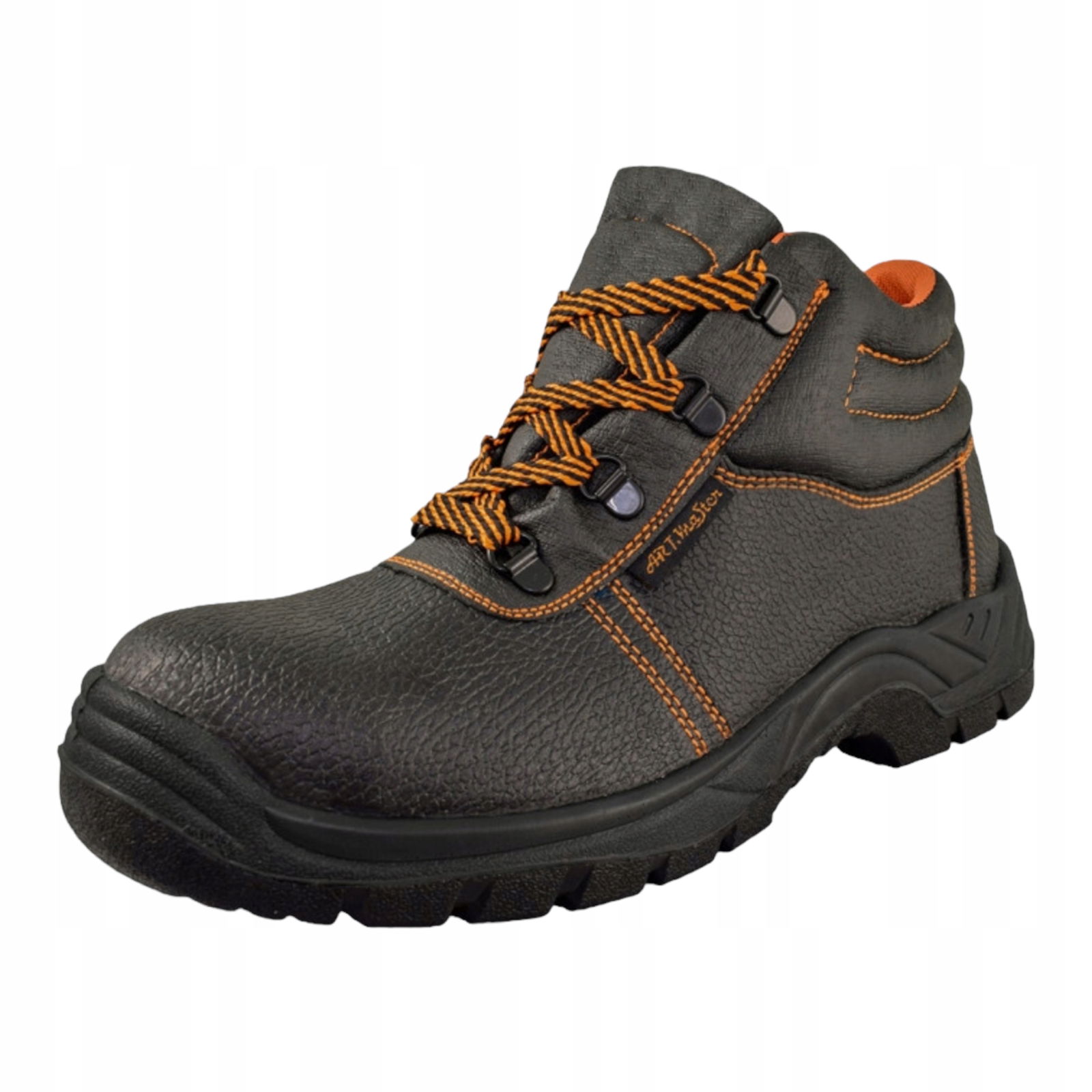 Trzewik ochronny bez podnoska. Cholewka wysoka wykonana ze skór bydlęcych tłoczonych w kolorze