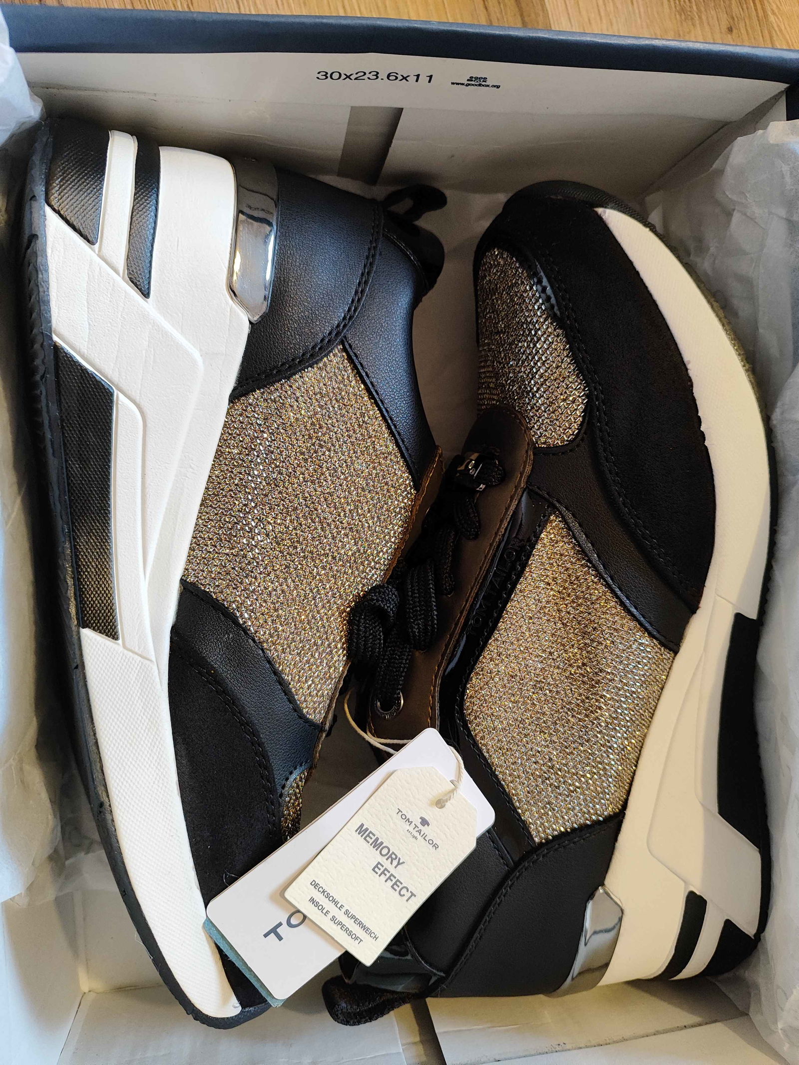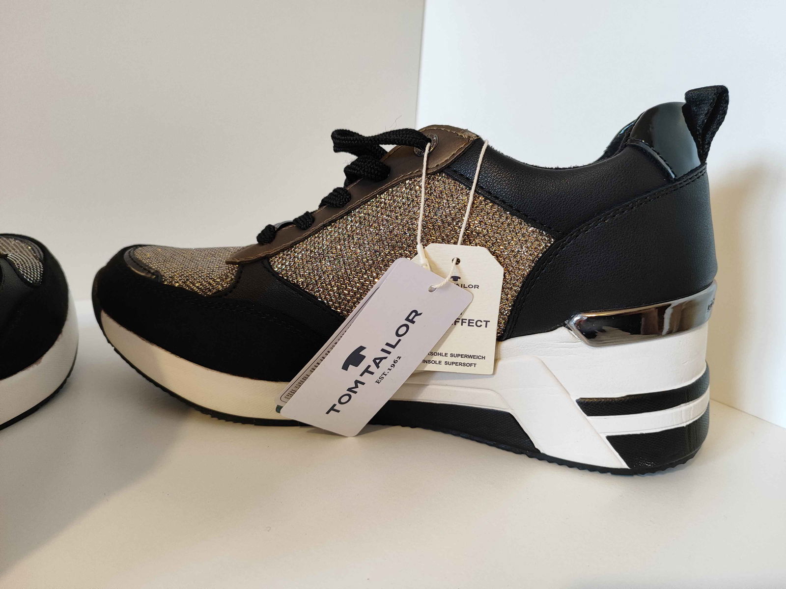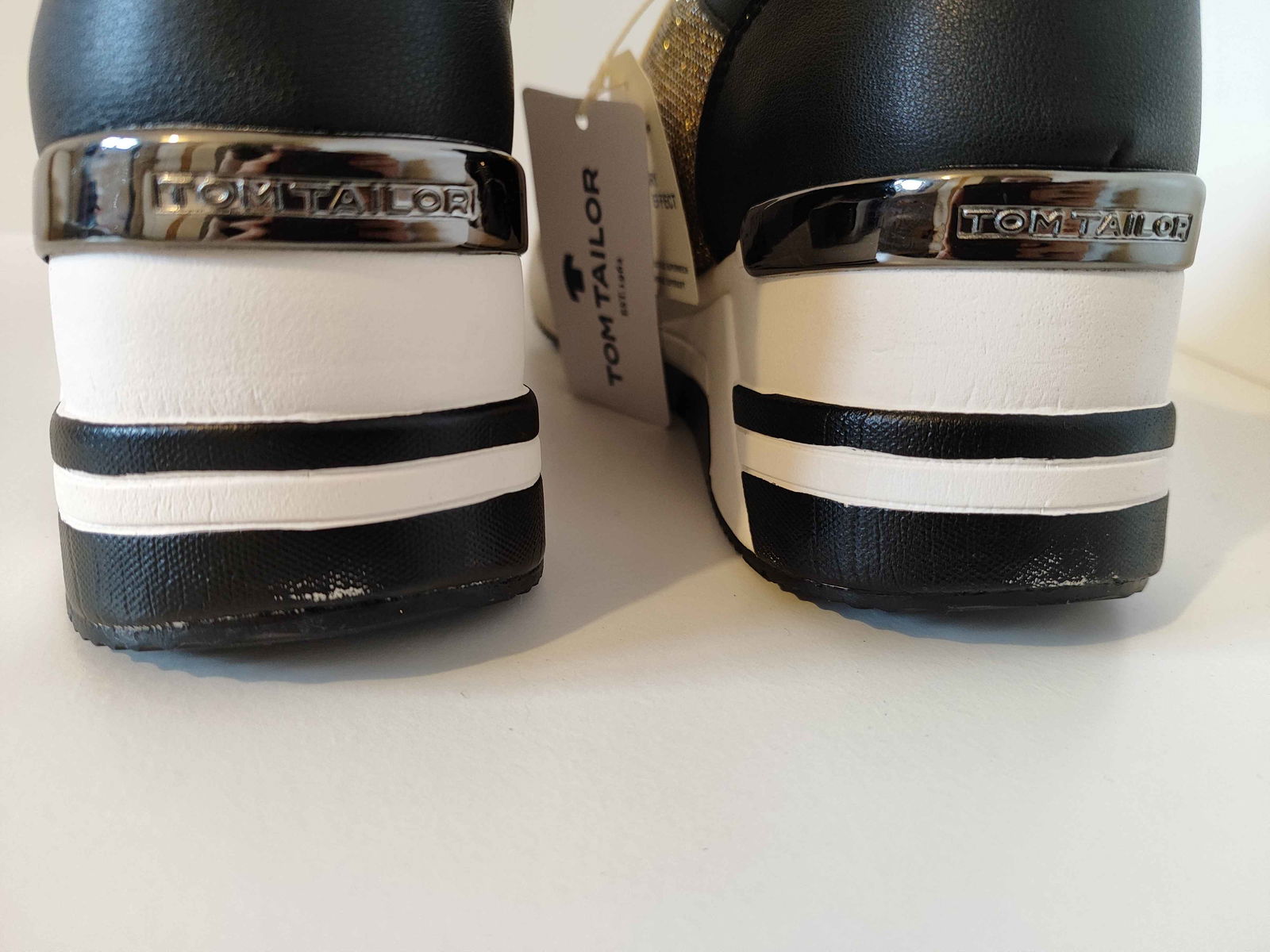 - Detale: Metalowe logo Tom Tailor na pięcie