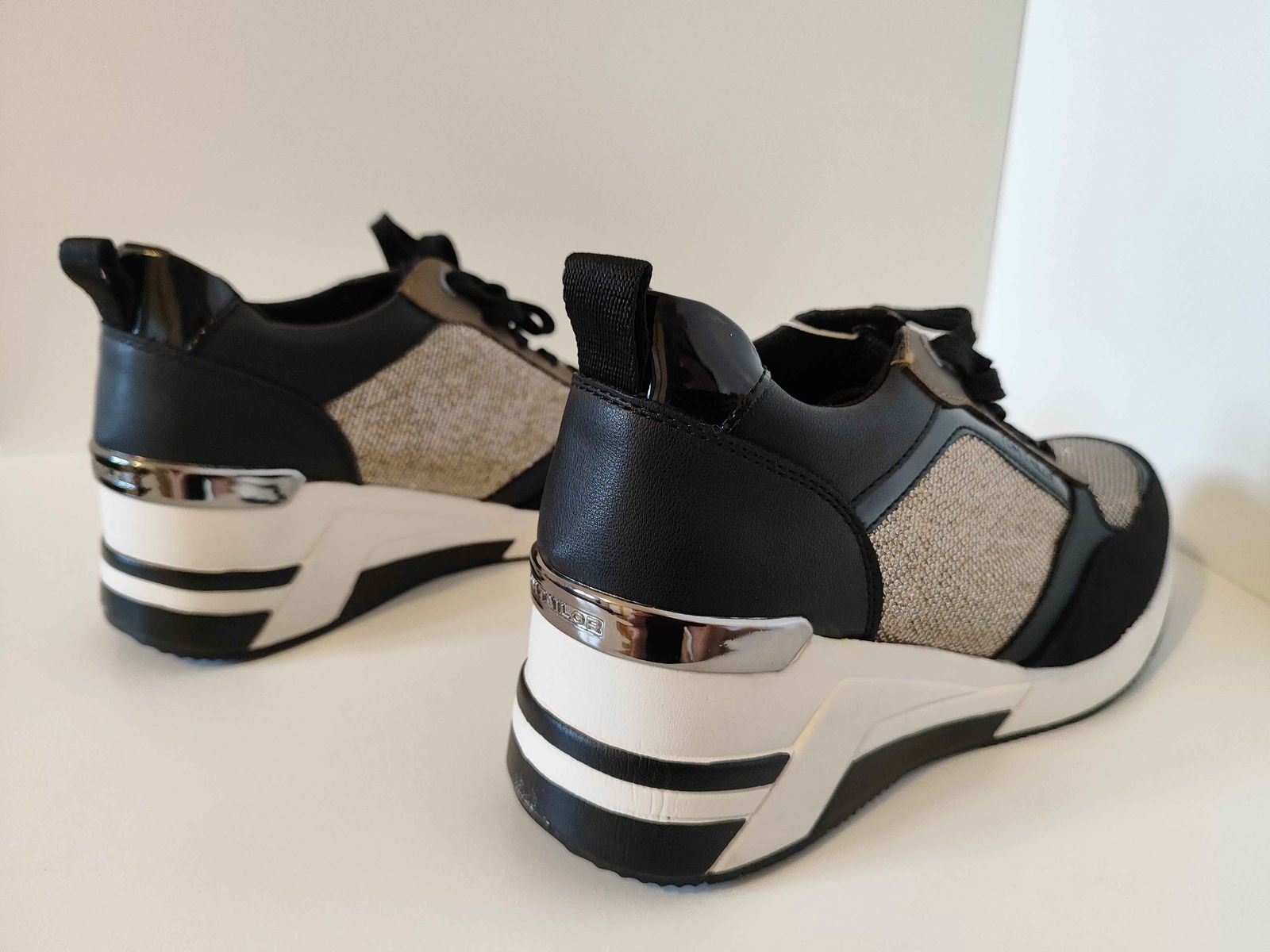 - Metaliczne akcenty na czarnej cholewce – subtelny, nowoczesny efekt