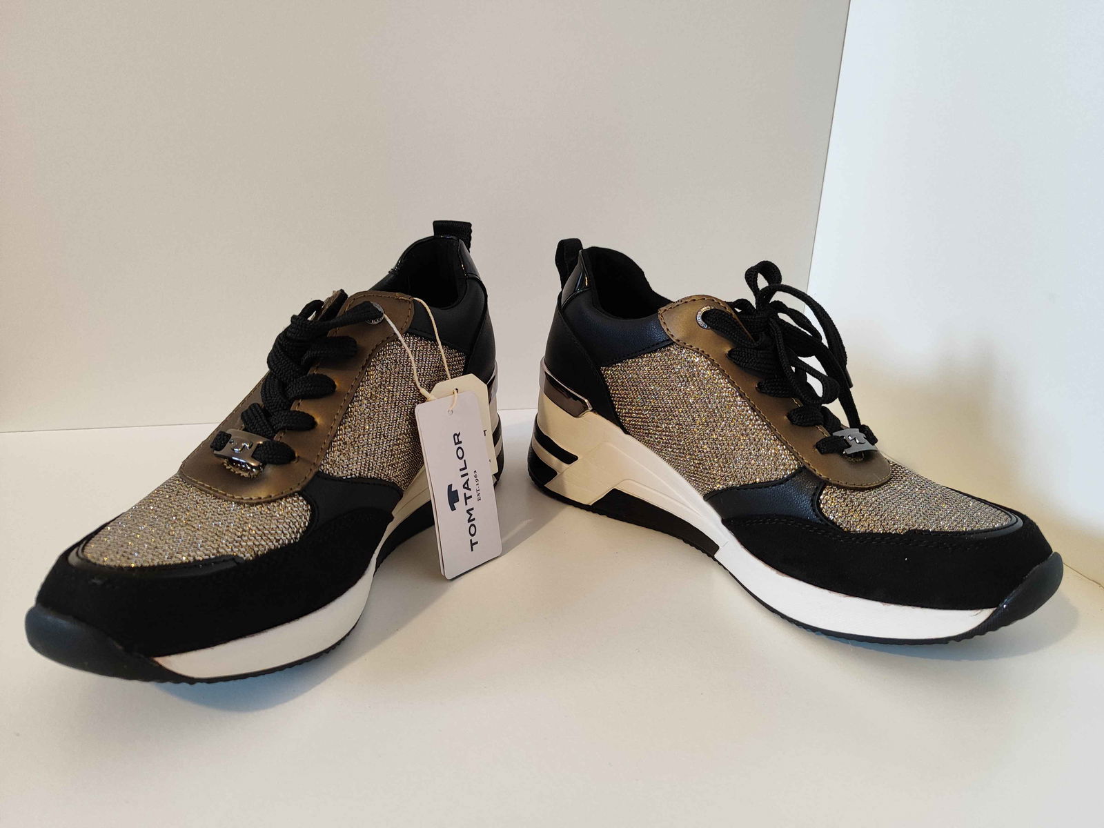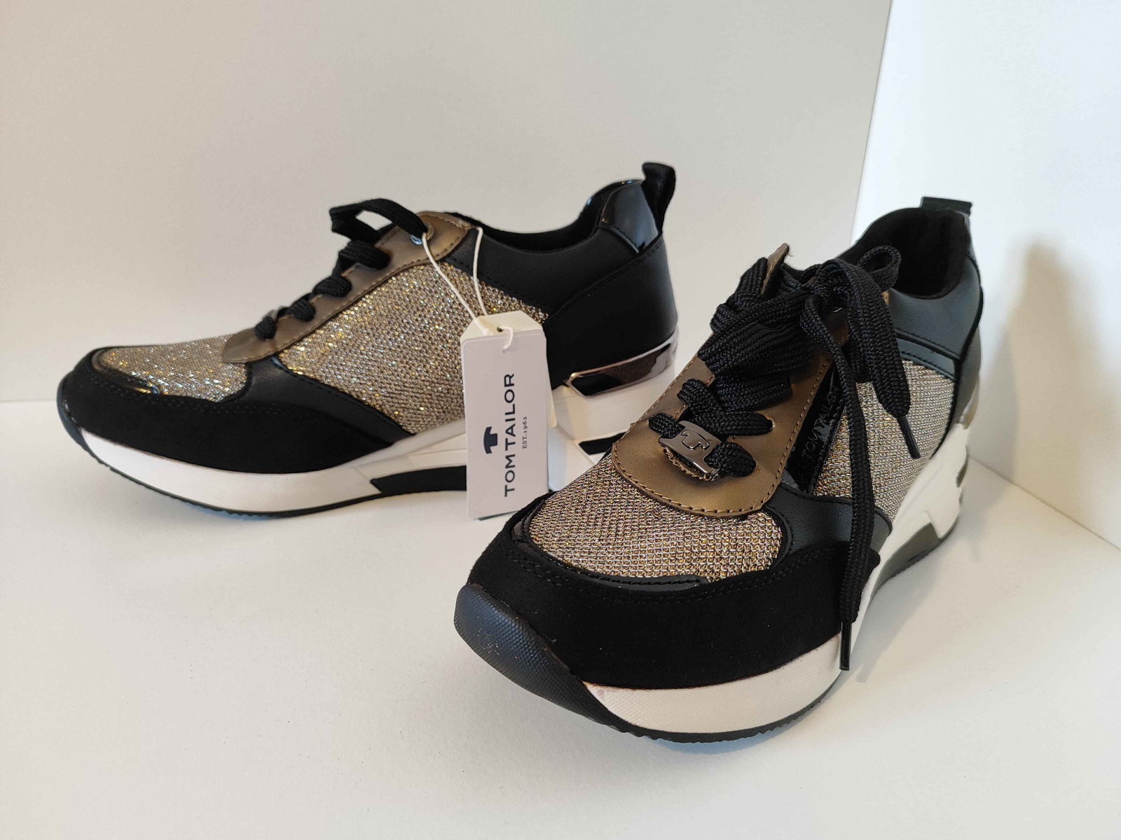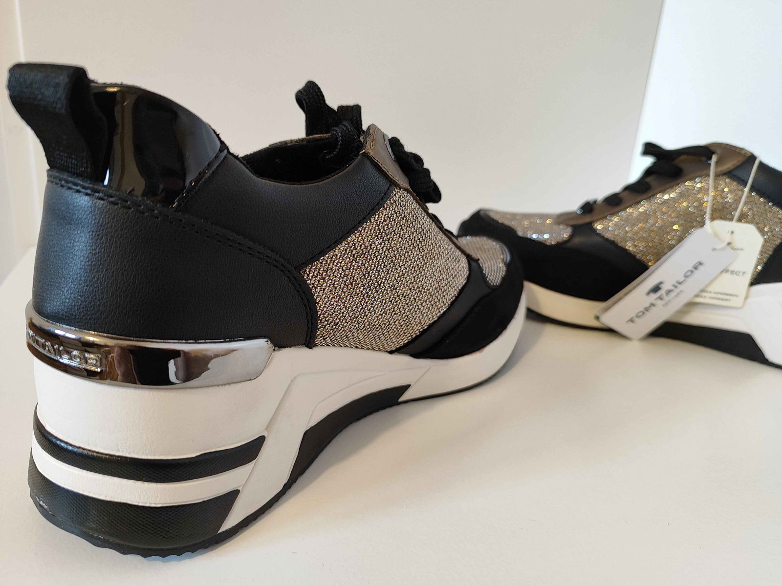 Tom Tailor Półbuty Damskie Metaliczne Czarne Casual Sznurowane 41