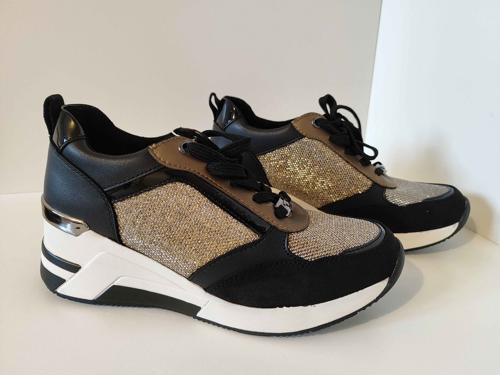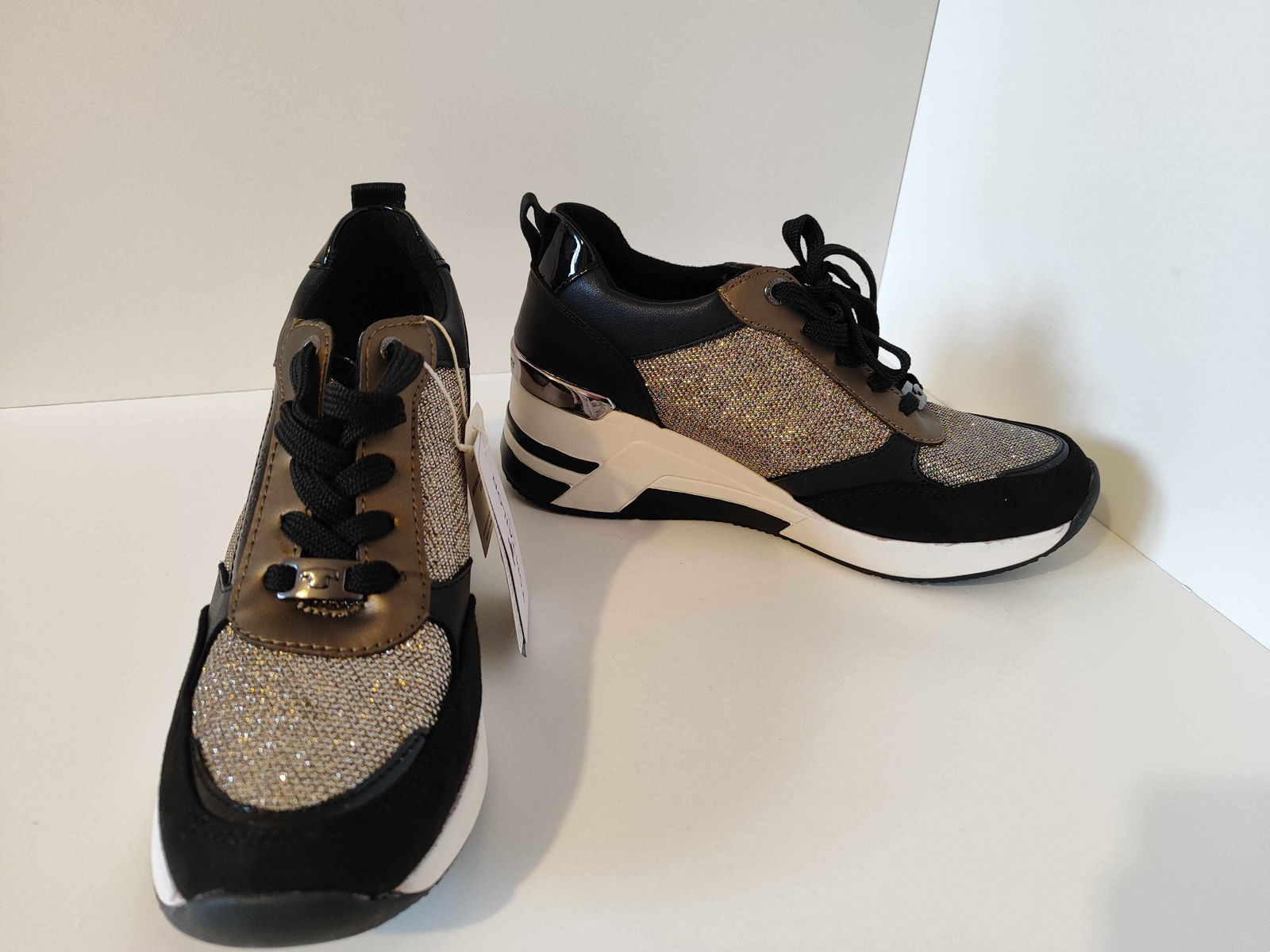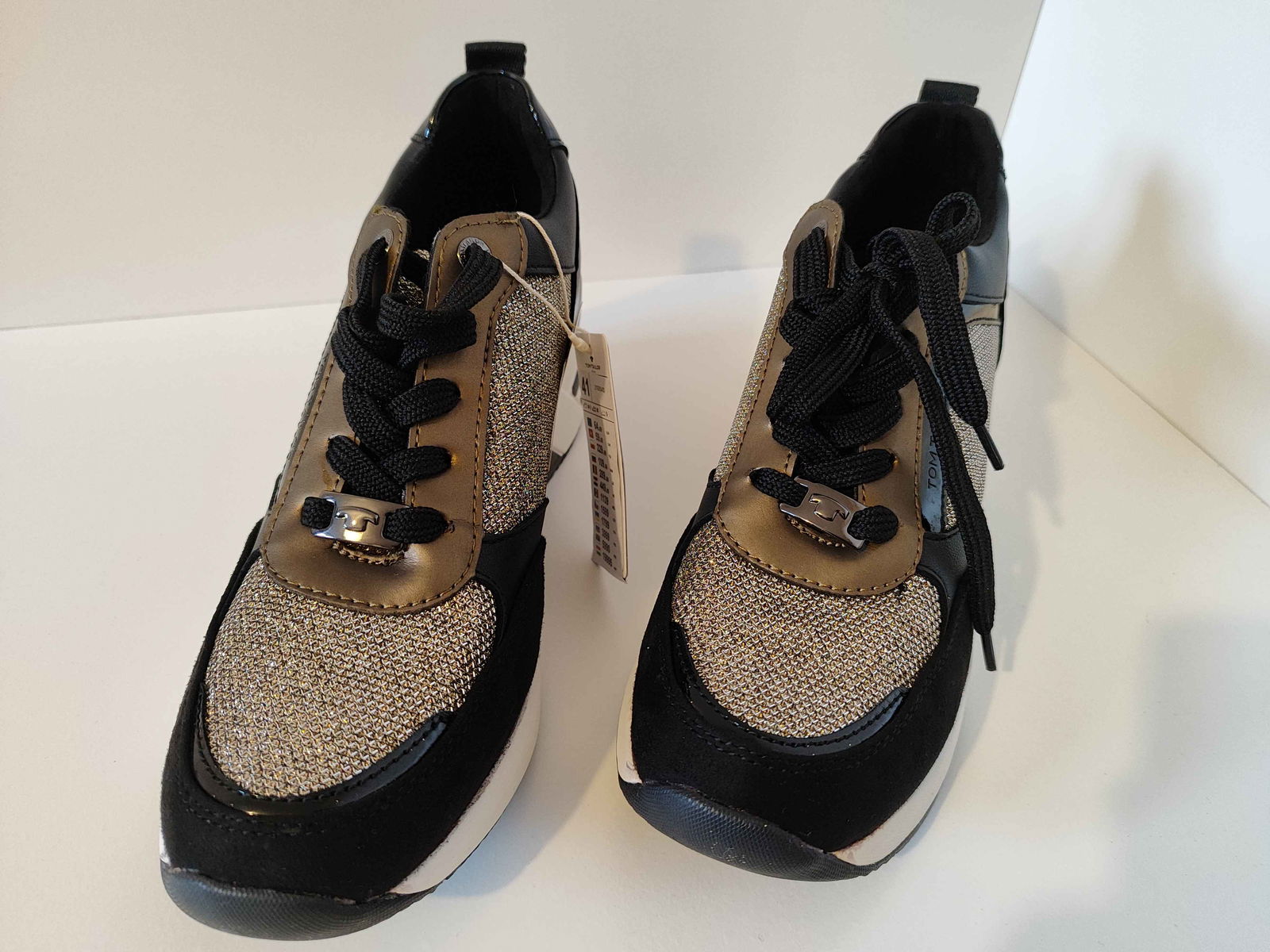 Tom Tailor Półbuty Damskie Metaliczne Czarne Casual Sznurowane 41