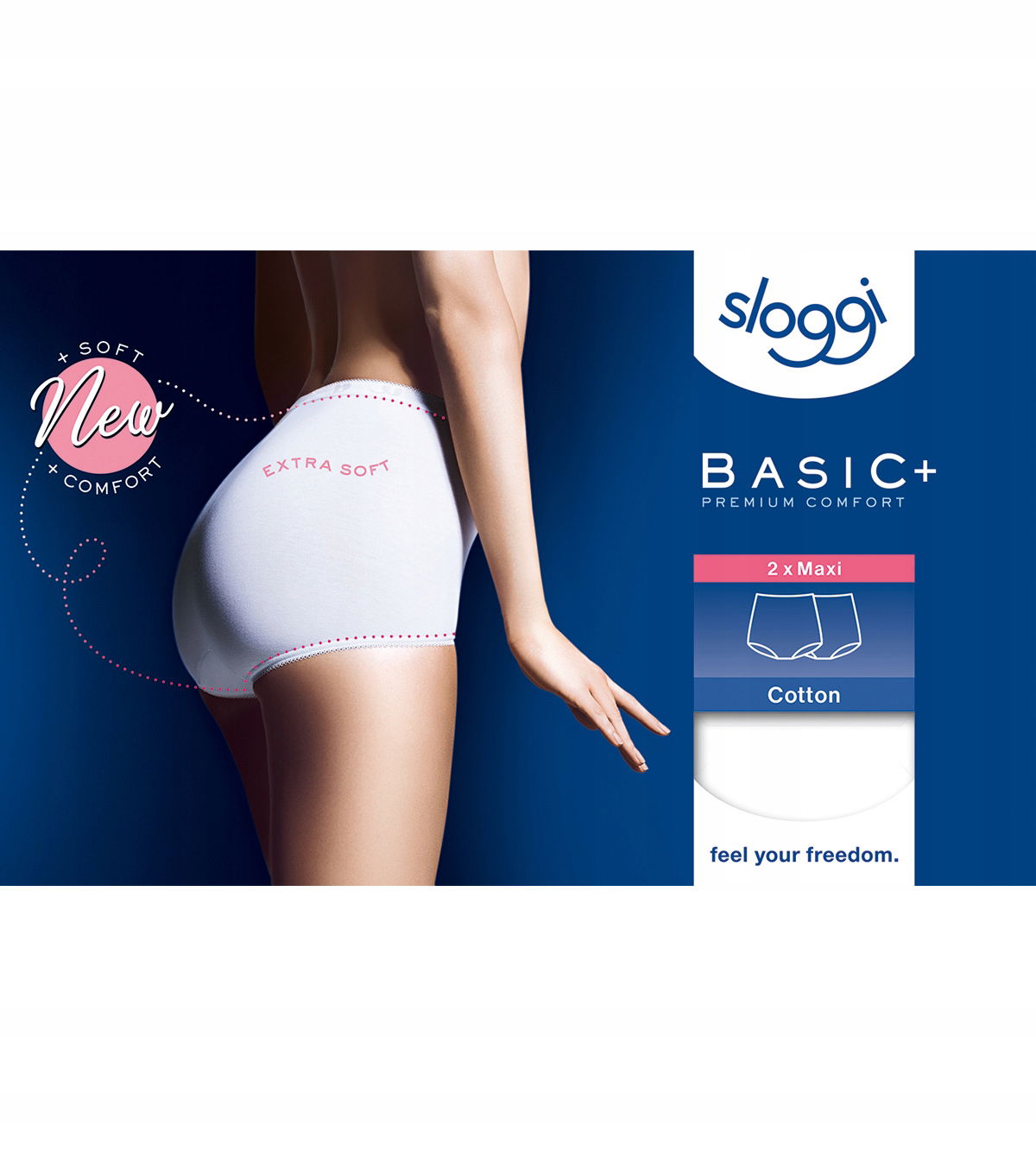 sloggi Basic+ Maxi to majtki wykonane z najwyższej jakości, miękkiej i przyjemnej w dotyku bawełny. Idealne dla osób o bardzo wrażliwej skórze, które mają problem ze znalezieniem bielizny niepodrażniającej i nieuwierającej ciała.