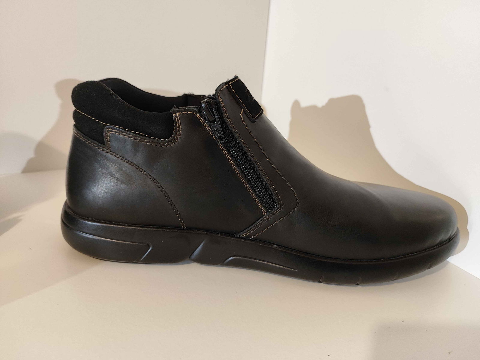 Nie każde męskie botki powstają wyłącznie po to, by dobrze wyglądać. Model Rieker B2792-00 został zaprojektowany z myślą o codziennym komforcie w chłodniejsze dni - bez zbędnych dodatków, za to z naciskiem na funkcjonalność i wygodę. Klasyczna, czarna cholewka ze skóry naturalnej nadaje im uniwersalny charakter, a ciepłe wnętrze z naturalnej wełny realnie wspiera komfort stóp podczas jesienno-zimowego użytkowania. To solidne, męskie buty do codziennego noszenia - do pracy, na spacery i na co dzień.