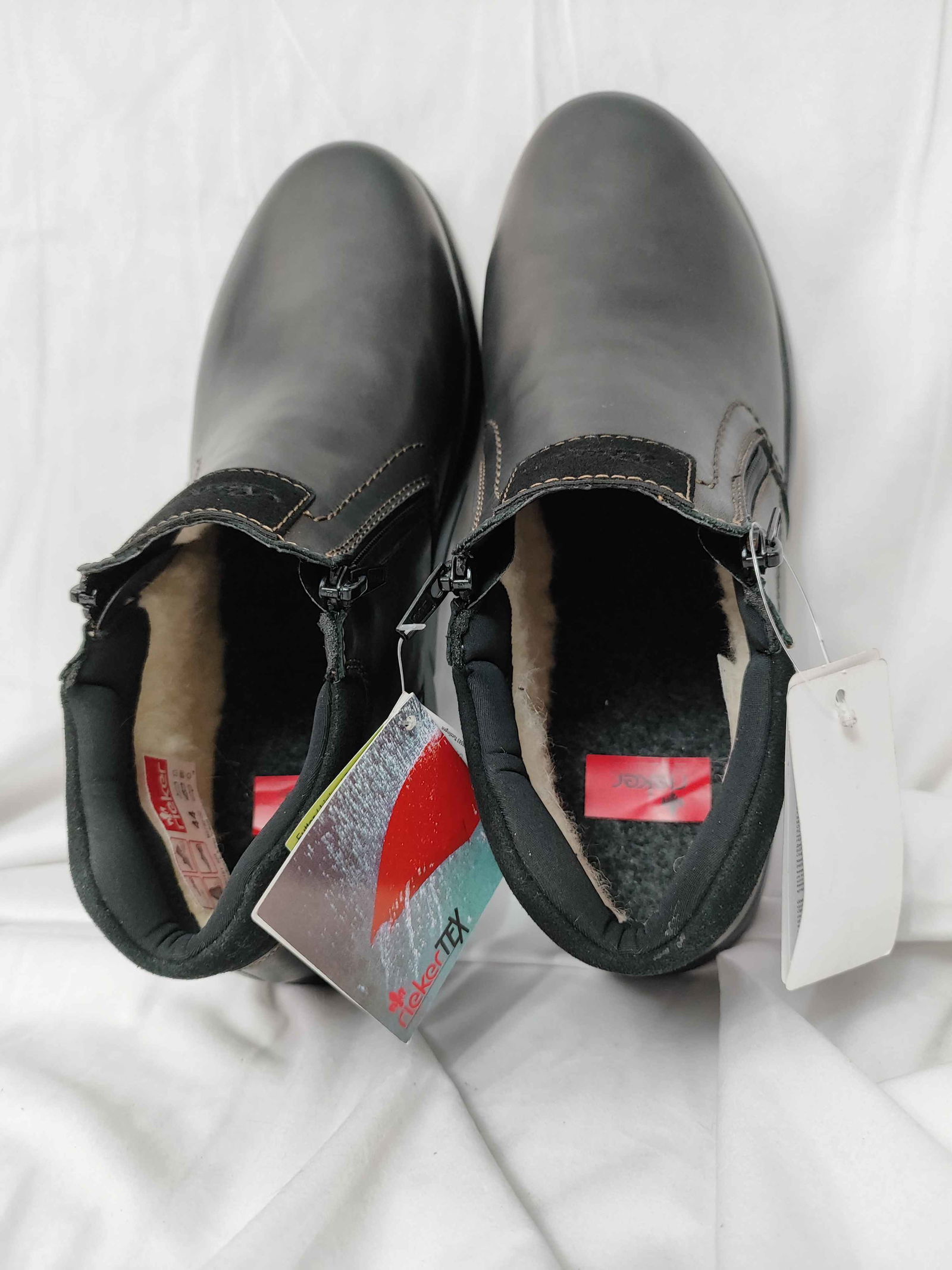 Rieker Botki Półbuty Męskie Skórzane Czarne Rieker-Tex Wełniane 44