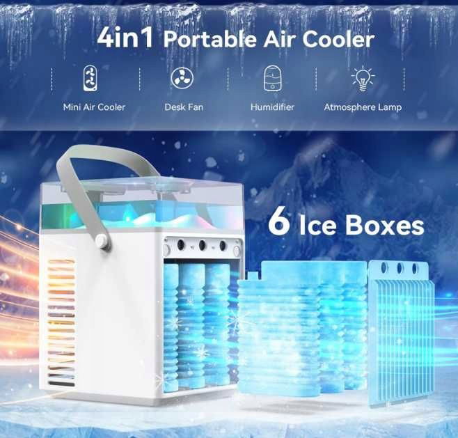 4w1 Nawilżacz powietrza/Przenośny klimator z pudełkami na lód, APP