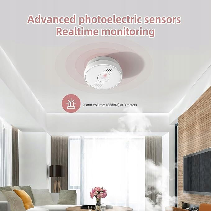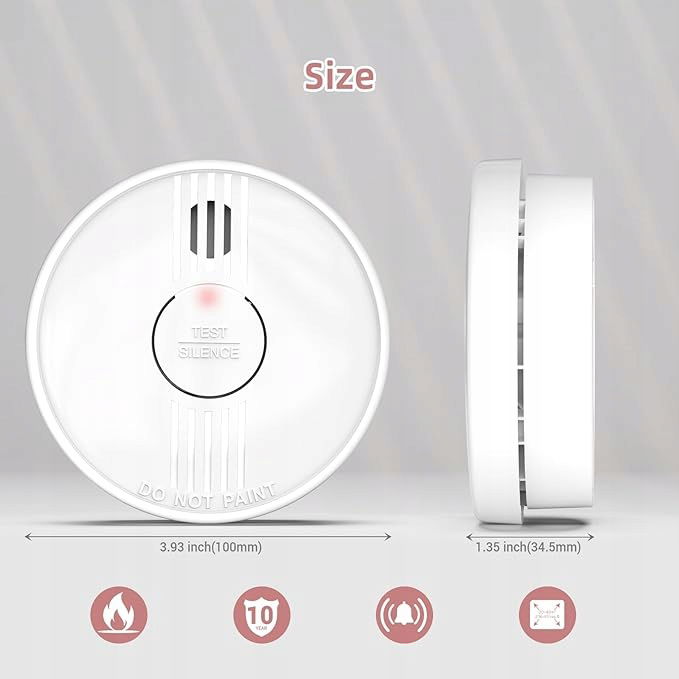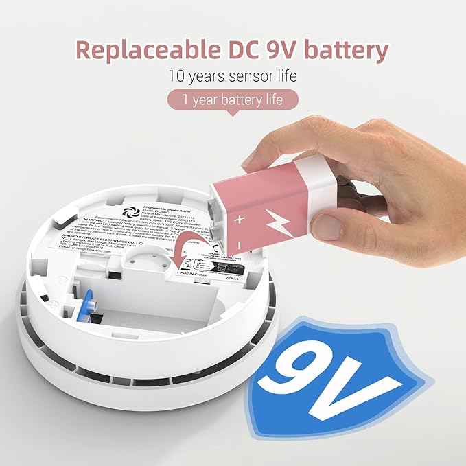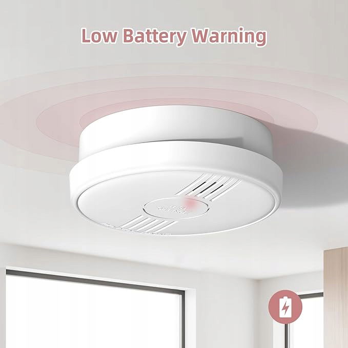 - Wymienna bateria: Bateria do czujnika jest wymienna, dzięki wymianie baterii można go dalej używać bez wydawania pieniędzy na nowe czujniki dymu. Żywotność baterii wynosi około 1 roku.