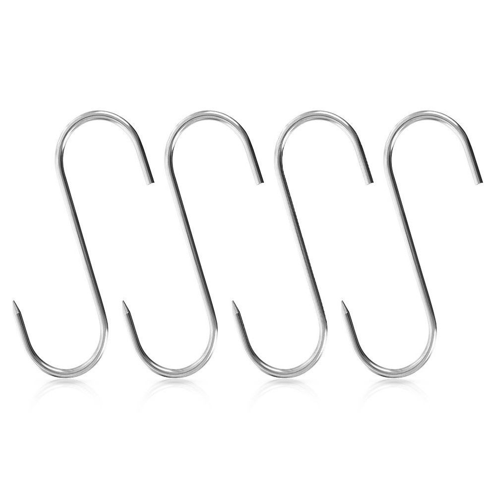 PRZYDATNE - Zestaw 4 sztuk haków w kształcie litery "S" o wymiarach 15 x 12 cm i średnicy 0,5 cm. Haki wykorzystamy podczas wędzenia.