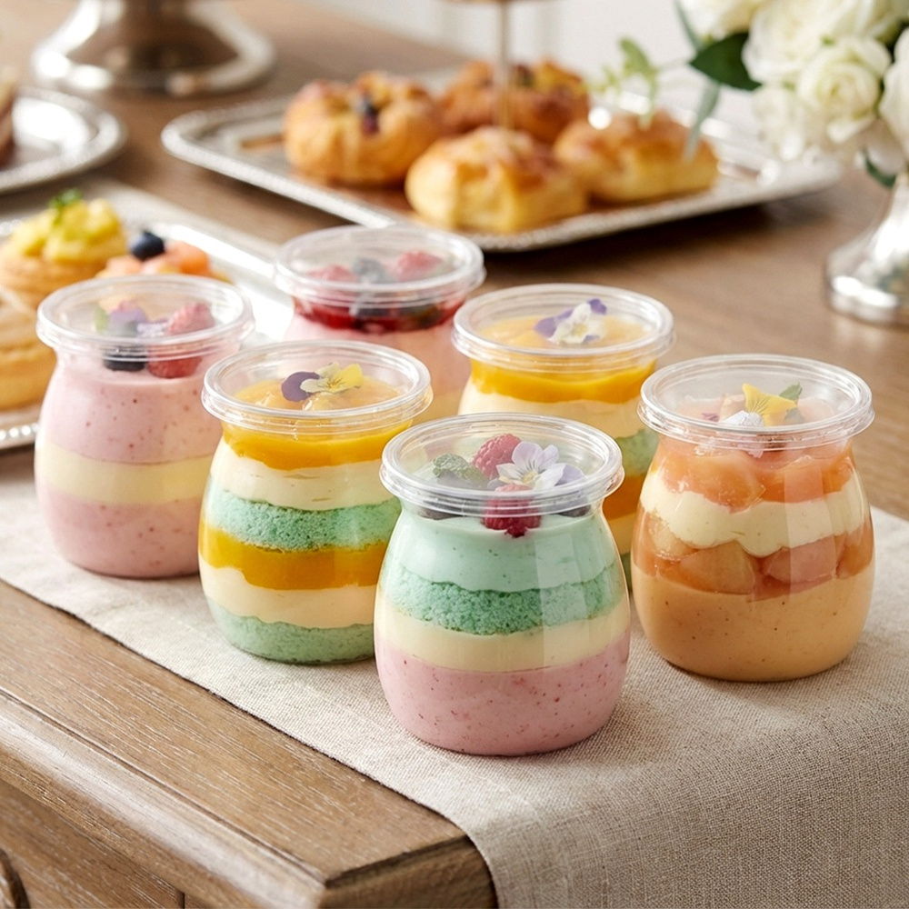 4X KUBKI PUCHARKI POJEMNIKI NA JOGURT DESERY PRZEKĄSKI DO DESERÓW 160 ML