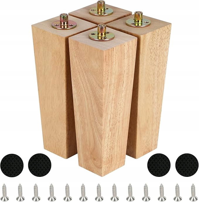 4x Kwadratowe Drewniane Nogi Meblowe 20cm Nóżki do mebli + Gumowe Podkładki