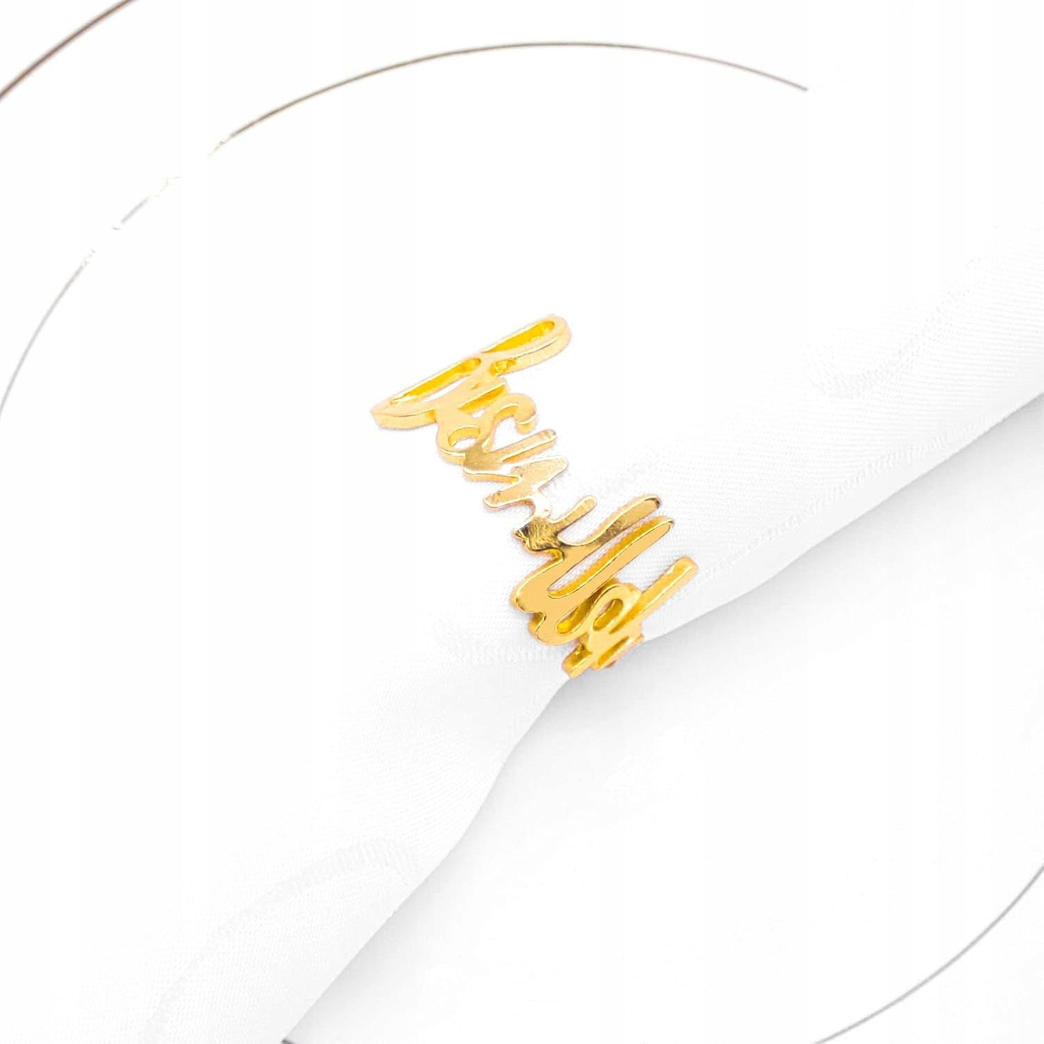 Obrączki na serwetki Bismillah to doskonały dodatek do nowoczesnej zastawy stołowej, który doda szyku i wyjątkowego akcentu każdej kolacji. Ich elegancki i minimalistyczny design wpasowuje się w każde otoczenie, podkreślając wyrafinowany wystrój stołu.