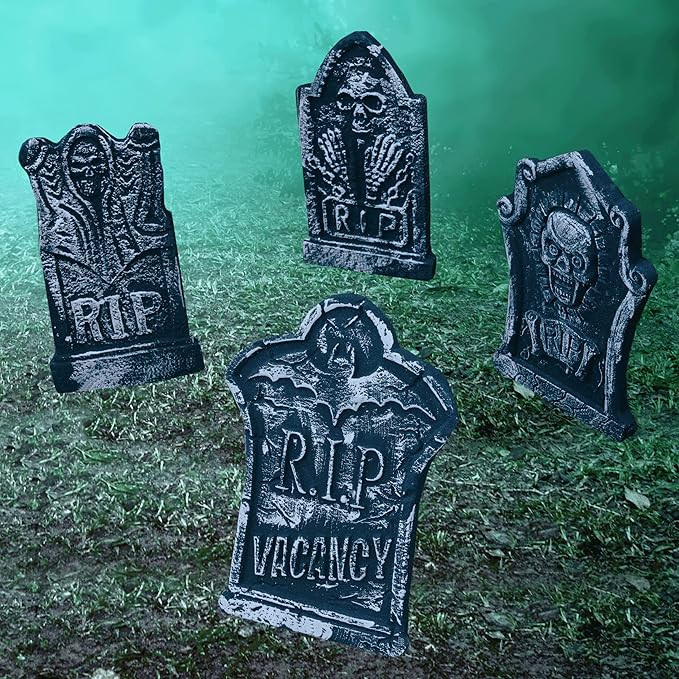 Prosta dekoracja: Upiększ ogród lub wnętrze dzięki tym 4 lekkim nagrobkom z pianki; idealne do upiększenia dekoracji na Halloween i stworzenia idealnej, przerażającej atmosfery