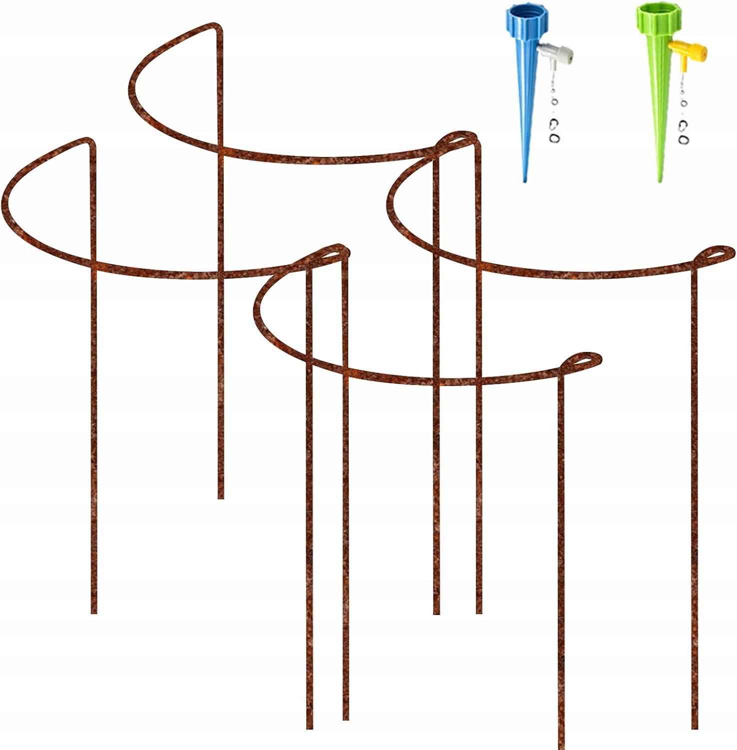 - Zawartość zestawu: 4 podpory do roślin zaprojektowane do naturalnego rdzewienia (35 cm wysokości, 21 cm szerokości) oraz 2 automatyczne kolce do podlewania.