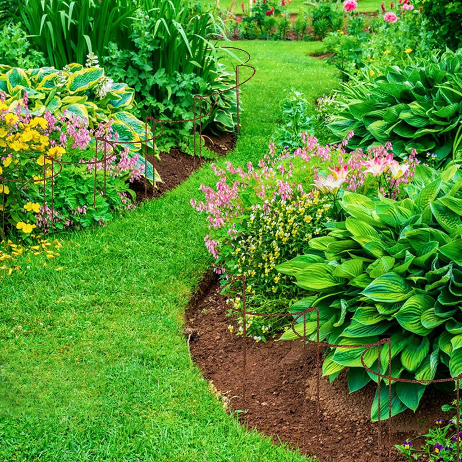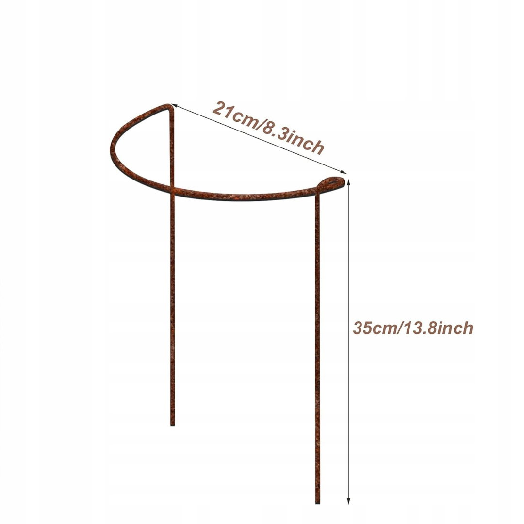 4 sztuki podpór do roślin w stylu postarzanego metalu, półokrągłe, naturalnie zardzewiałe pierścienie do podtrzymywania kwiatów z ramą, wyposażone w 2 samonawadniające kolce, metalowe, zardzewiałe, łączone obrzeże ogrodowe do piwonii, hortensji (21x35 cm).