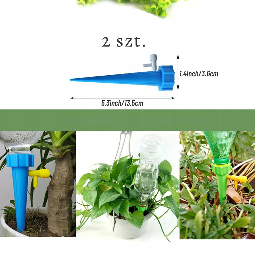W zestawie znajdują się automatyczne kolce do podlewania, które umożliwiają samonawadnianie roślin z użyciem plastikowych butelek, co ułatwia pielęgnację podczas nieobecności.
