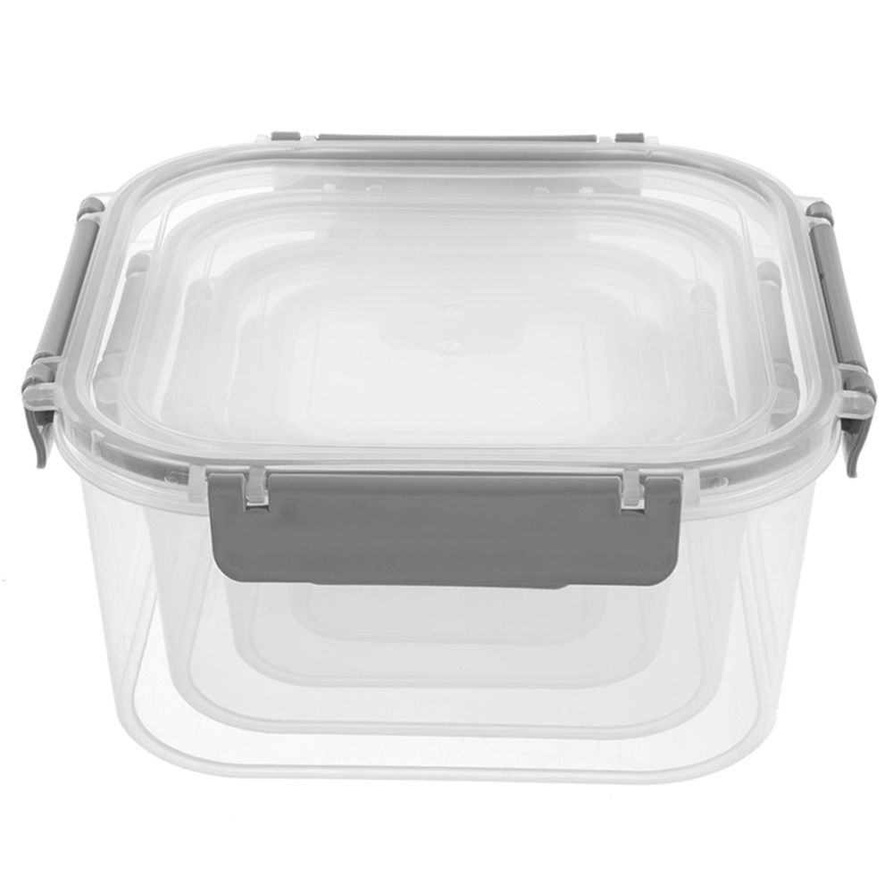 Zestaw pojemników kuchennych w różnych rozmiarach. W zestawie: 1x pojemnik o wymiarach 21,5 x 21,5 x 10 cm i pojemności 2,9 l, 1x pojemnik o wymiarach 18,5 x 18,5 x 8,5 cm i pojemności 1,8 l, 1x pojemnik o wymiarach 15 x 15 x 7,5 cm i pojemności 900 ml i 1x pojemnik o wymiarach 12 x 12 x 6 cm i pojemności 400 ml. Przydatne w każdej kuchni. Pozwolą na odpowiednie przechowywanie produktów, wprowadzając ład i porządek do kuchni.