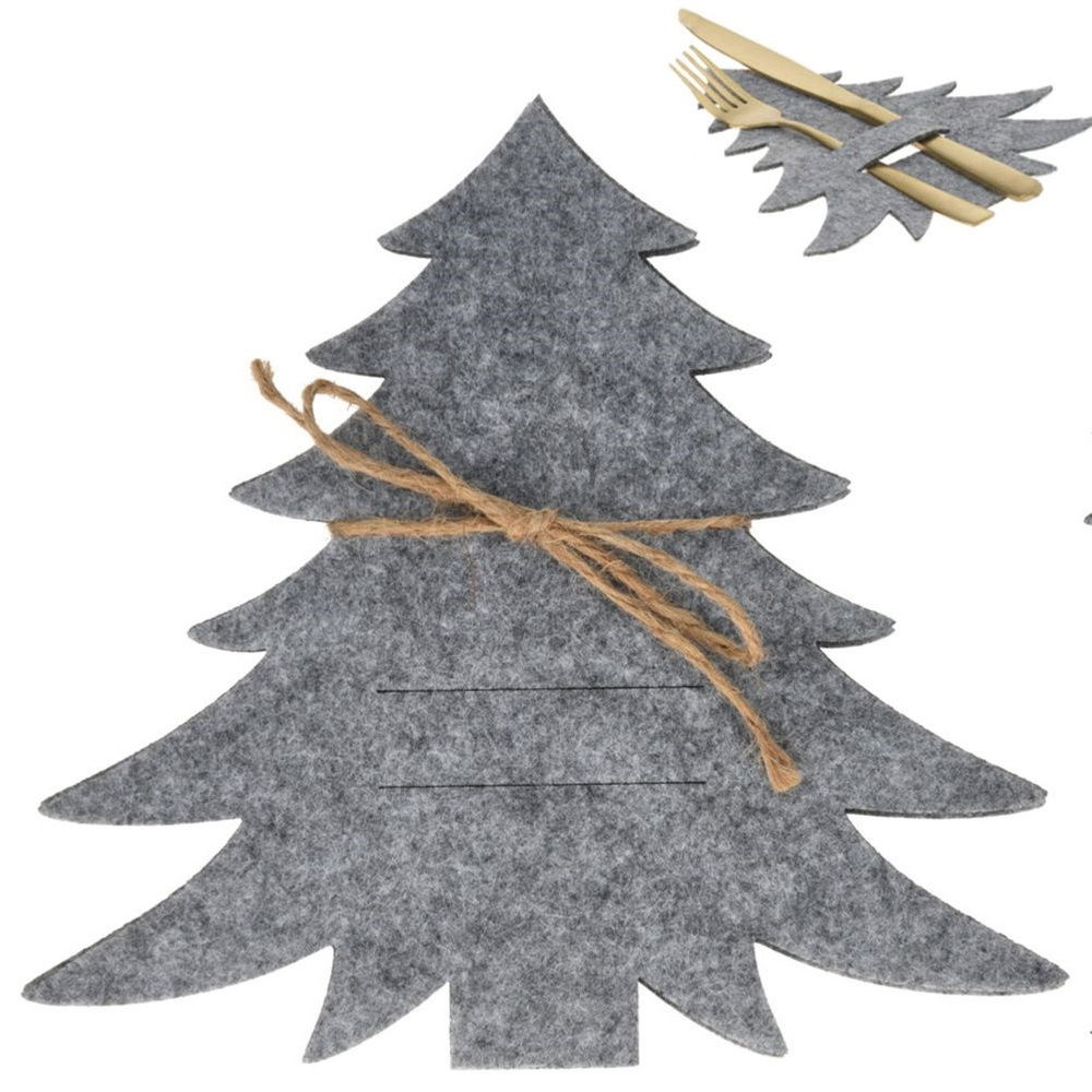 Komplet czterech etui na sztućce w kształcie choinki. Przydatne podczas dekoracji stołu w okresie zimowym i świątecznym. Kieszonka pomieści łyżkę, widelec oraz nóż. Dzięki etui wszystkie najpotrzebniejsze sztućce będą w jednym miejscu. Niezwykle elegancki dodatek do nakrycia stołu. Zestaw etui można wykorzystać również jako podkładki pod kubek z gorącym napojem. Nada niepowtarzalnego, świątecznego klimatu. Idealny pomysł na świąteczny upominek.