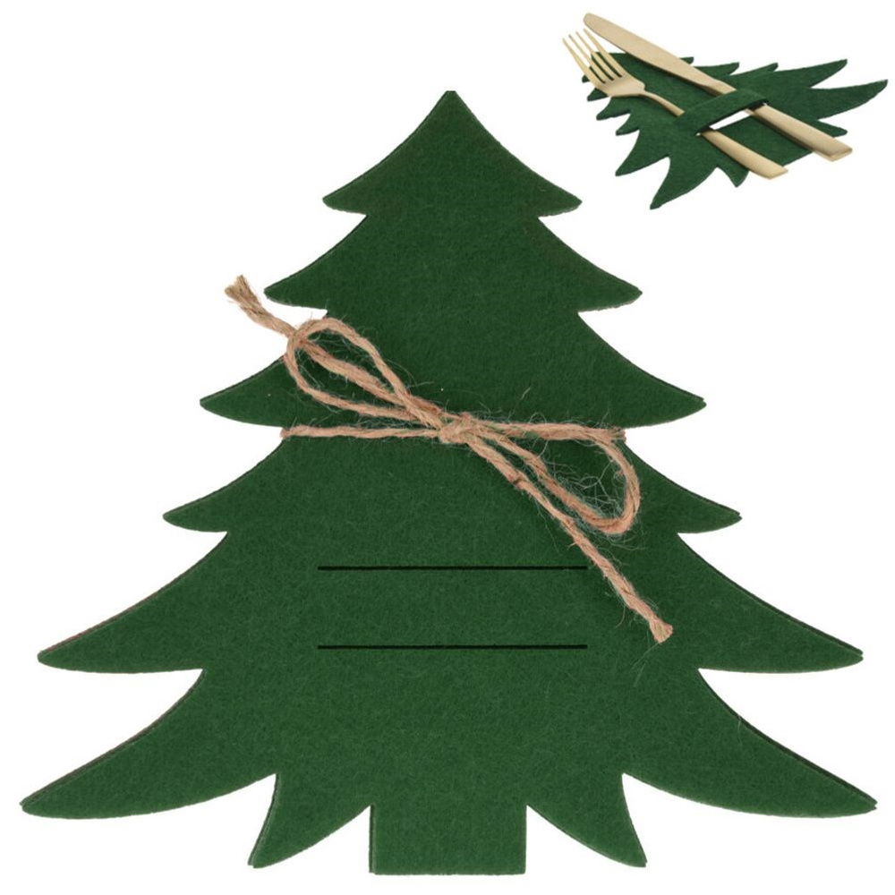 ŚWIĄTECZNE - Zestaw czterech sztuk etui na sztućce w kształcie choinki. Etui ma wymiary: 20 x 18 cm.