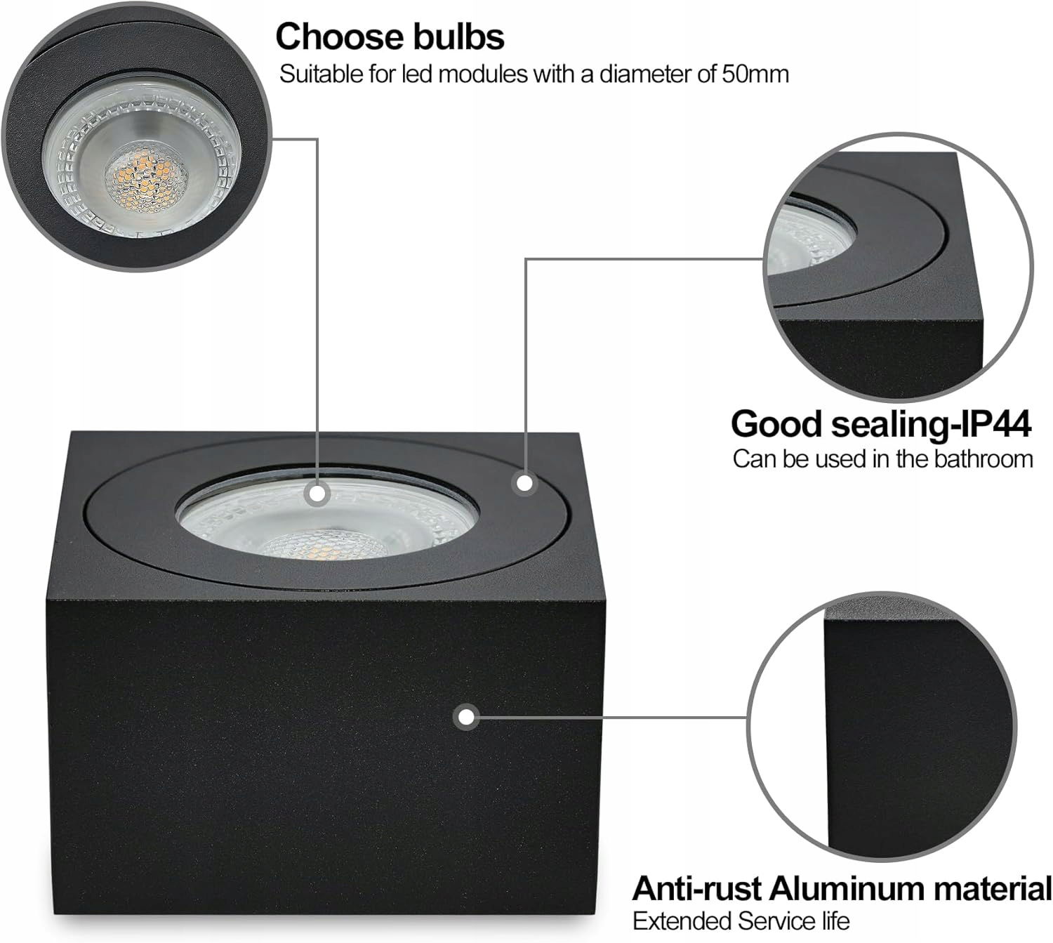 - Łatwy montaż: natynkowa ramka do oprawy punktowej. Ta oprawa może być optymalną alternatywą dla opraw punktowych wpuszczanych. Zwłaszcza jeśli brakuje miejsca. Dzięki podłączeniu do sieci 230 V nie potrzebujesz transformatora.