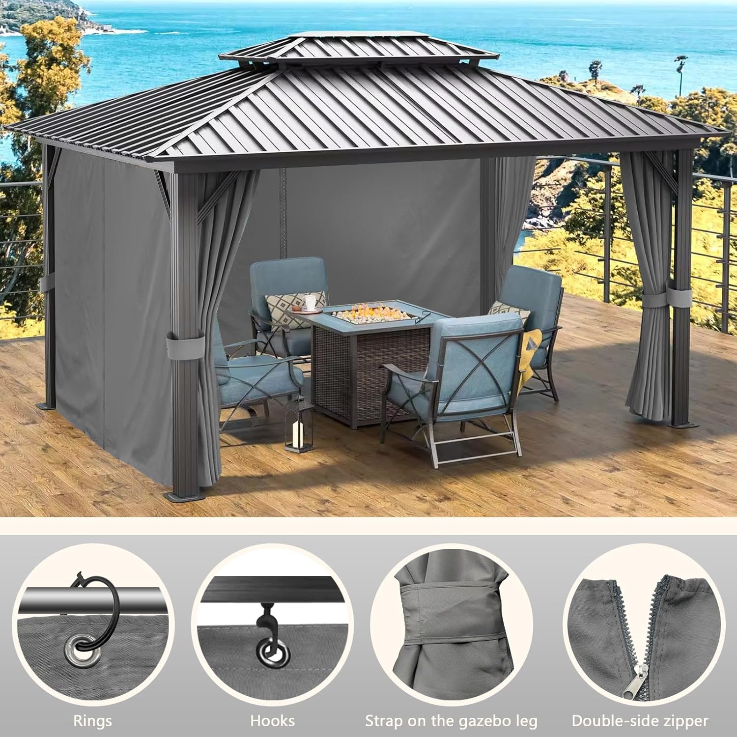 Zestaw 4 ścian bocznych do pawilonu ogrodowego 3x3m zapewnia skuteczną ochronę przed niesprzyjającymi warunkami pogodowymi. Dzięki wodoszczelności i ochronie przed promieniami UV, tworzą komfortowe miejsce do relaksu i spotkań na świeżym powietrzu.Idealne rozwiązanie na każde ogrodowe przyjęcie – łatwe w montażu, dostosowują się do Twoich potrzeb, dając pełną swobodę w aranżacji przestrzeni. Ciesz się spotkaniami bez obaw o niepogodę i działanie słońca.Wykorzystaj ściany boczne jako doskonałe dopełnienie Twojego pawilonu. Oferują one nie tylko funkcjonalność, ale również stylowy wygląd, wzbogacający każdą przydomową przestrzeń.Ściany boczne są idealne na spotkania rodzinne, grille czy większe imprezy na świeżym powietrzu. Podkreślają komfort i estetykę każdego wydarzenia, zapewniając dodatkową prywatność.✅ Marka: Inmeilifus✅ Model: DD-WBDE✅ Wymiary: 300 dł. x 300 szer. x 224 wys. cm✅ Waga: 6,17 kg✅ Materiał: Poliester✅ Kolor: SzaryEBPP7700, SZNW+