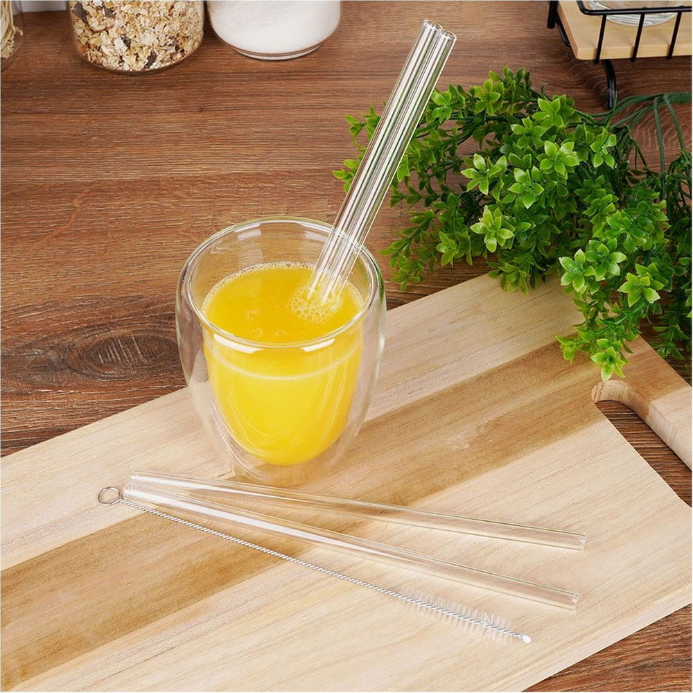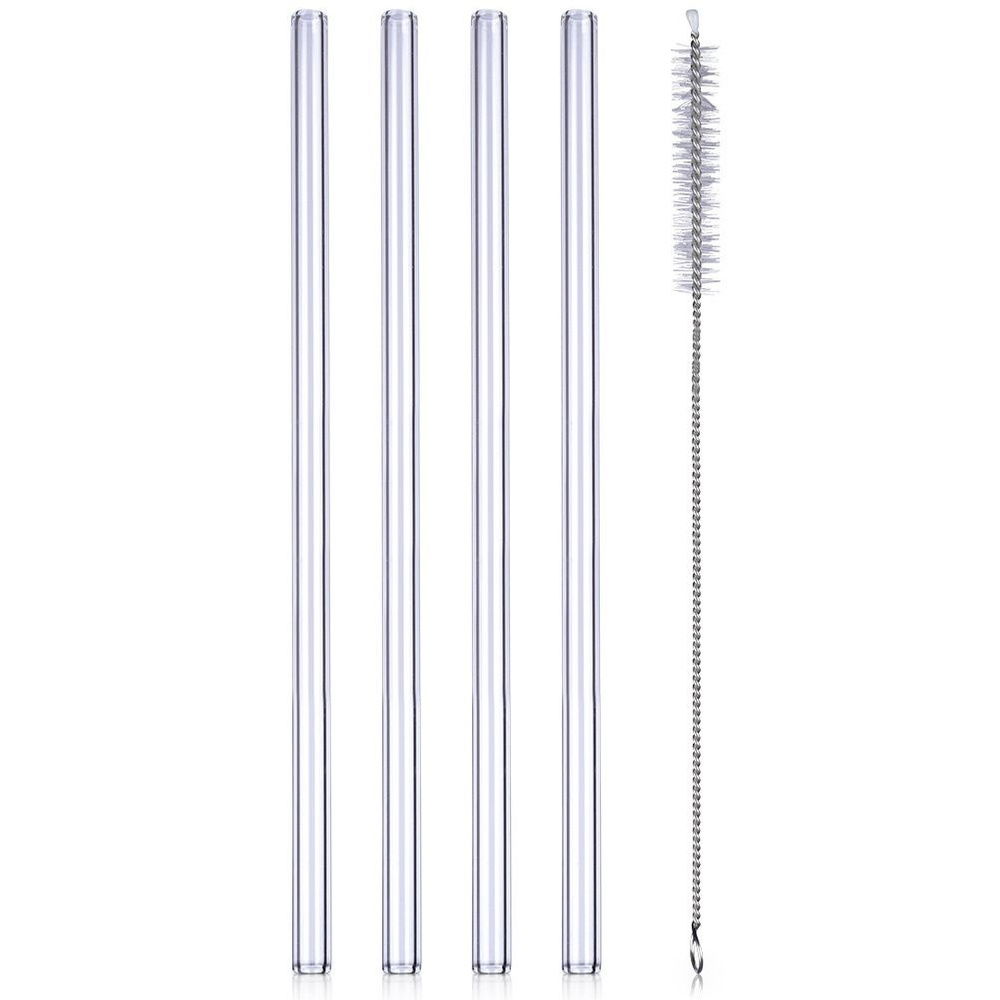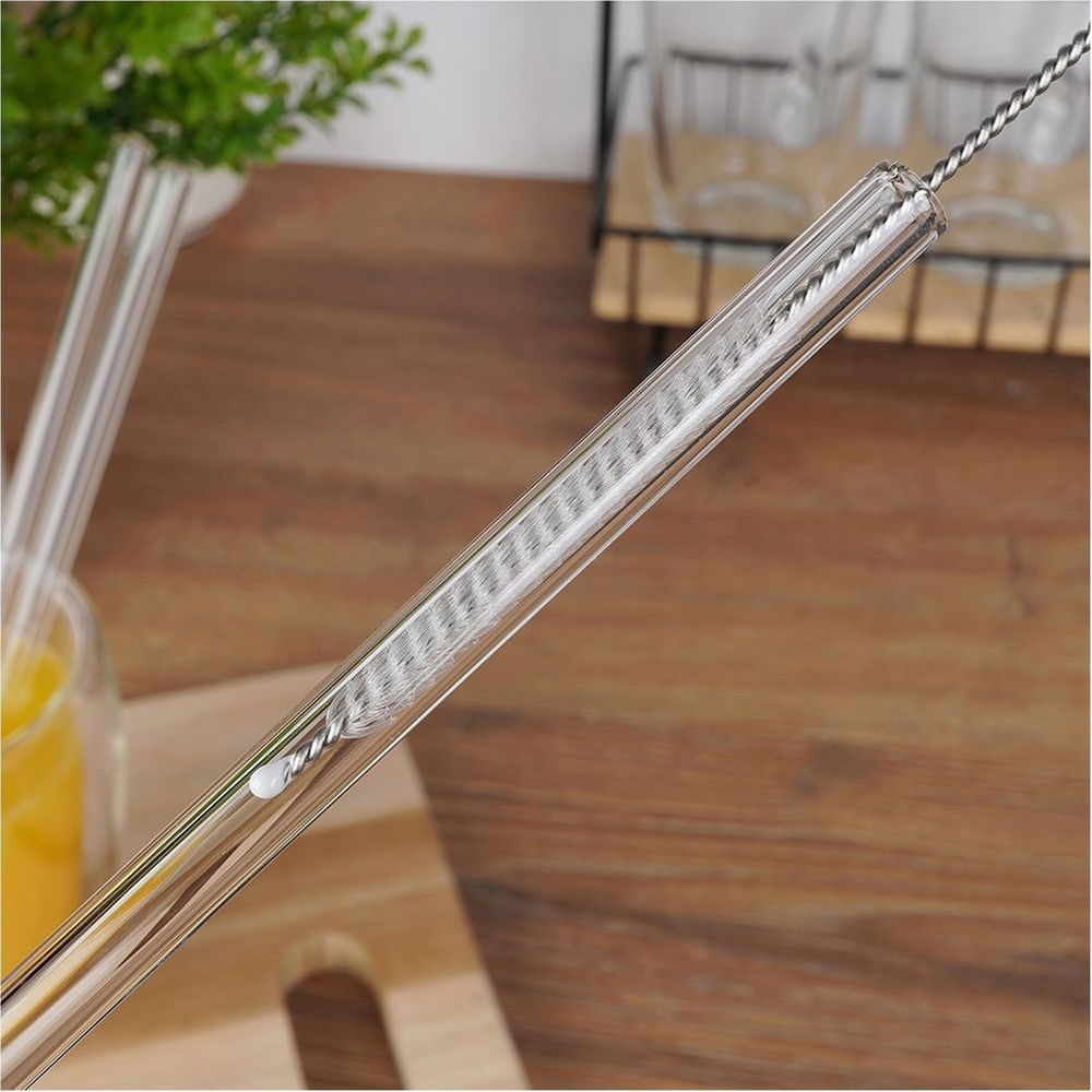 4x Szklane Słomki do Napojów Rurki Proste Wielorazowe z Czyścikiem Szczotką