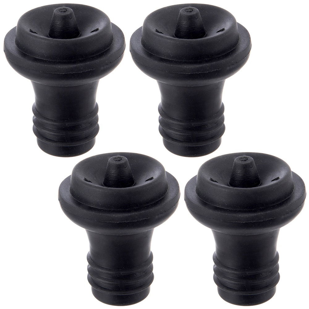 Zestaw 4 szt. zatyczek próżniowych do butelek - Praktyczne zatyczki umożliwiają szczelne i próżniowe zamknięcie otwartej butelki z winem, sokiem lub innym napojem, zapobiegając ich psuciu. Każda zatyczka ma wymiary 3,3 x 3,3 x 4 cm.