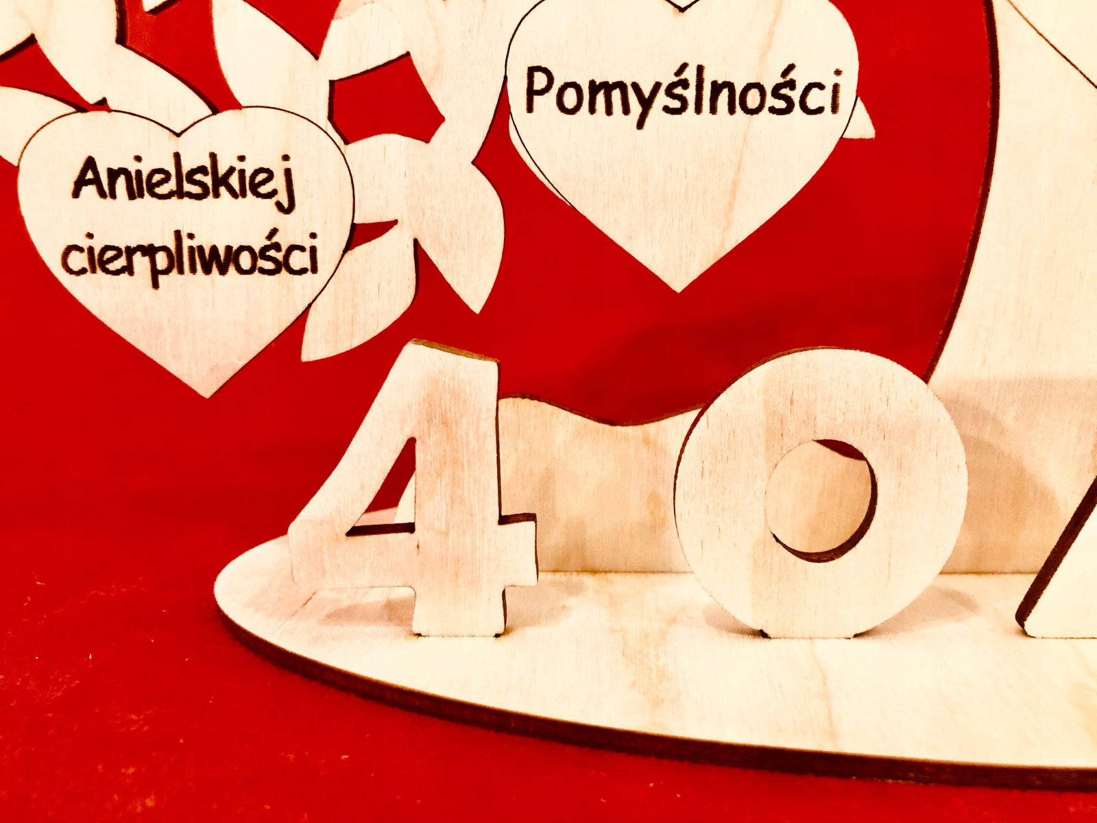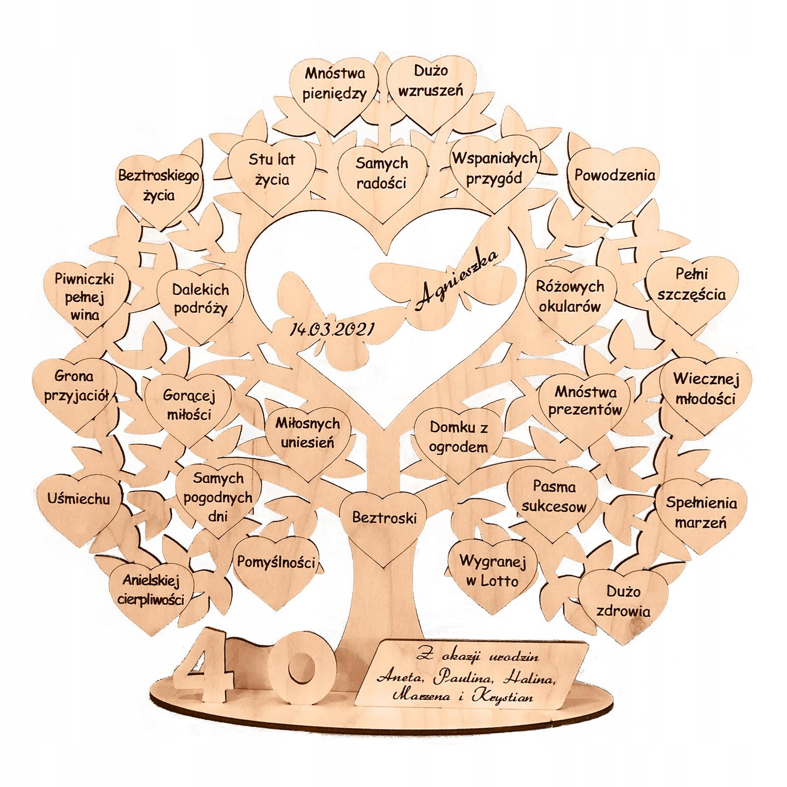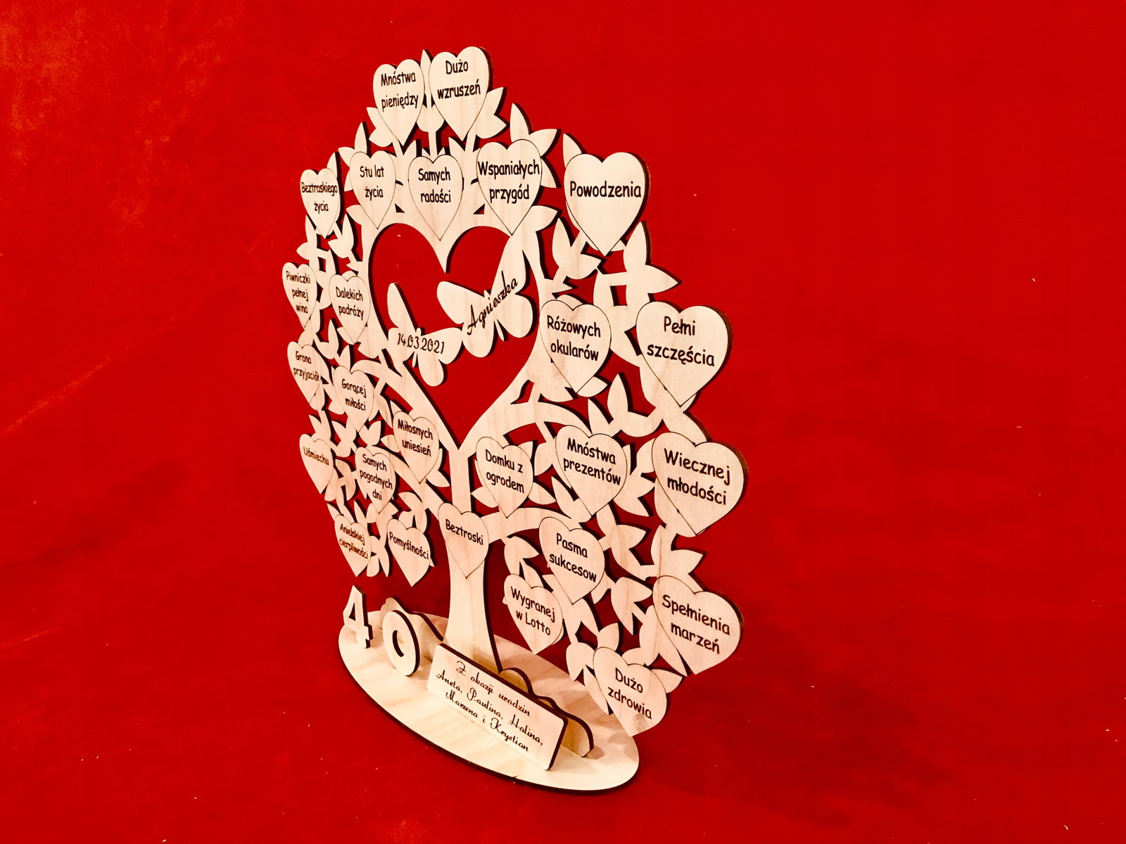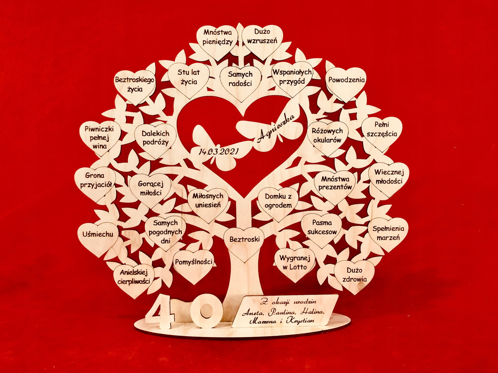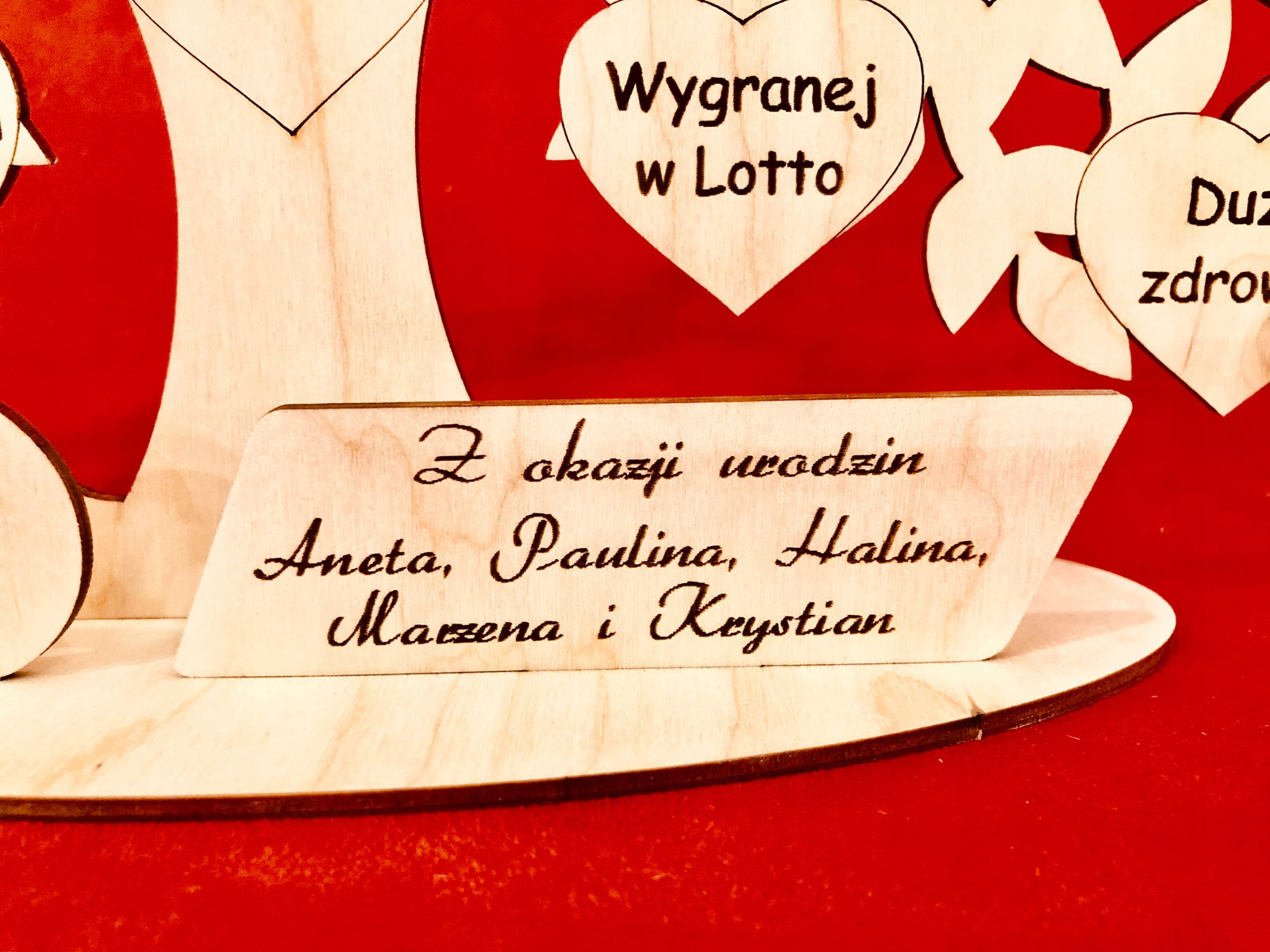 Przepięknie wycięte ze sklejki i grawerowane drzewko z życzeniami dla solenizanta.