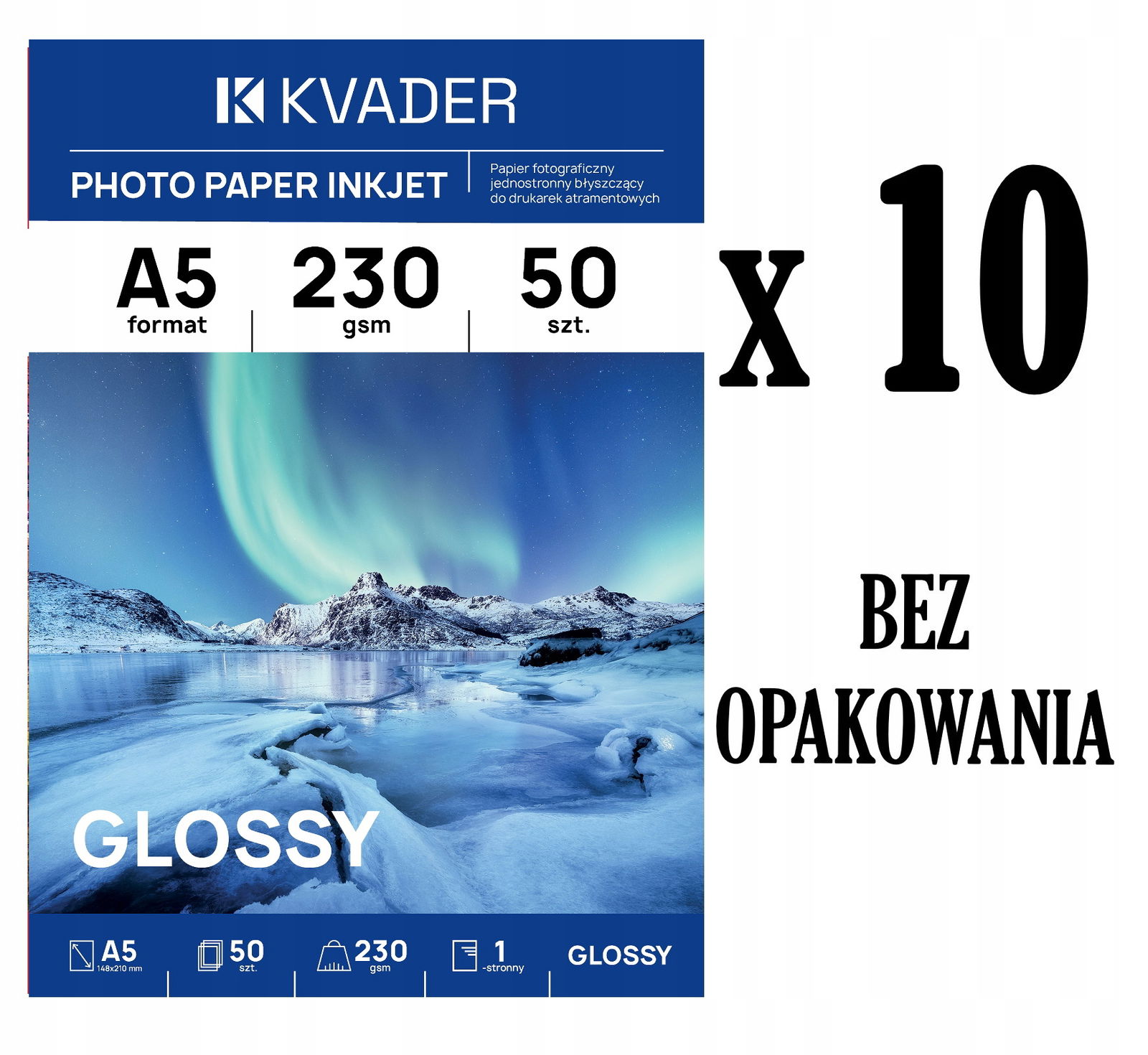 Przedmiotem tej aukcji jest 500 kartek papieru pakowanych hurtowo - 10 foliowych opakowań po 50 kartek, każde posiada oryginalną naklejkę producenta.