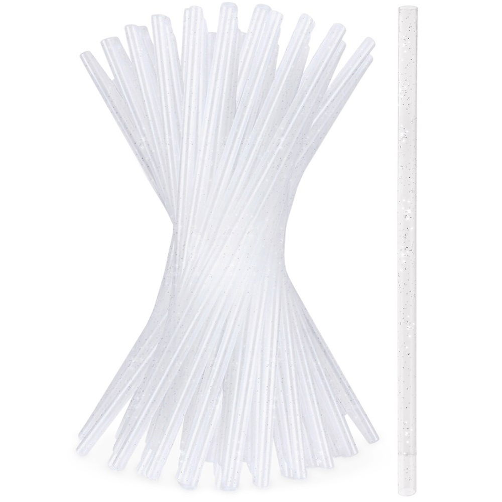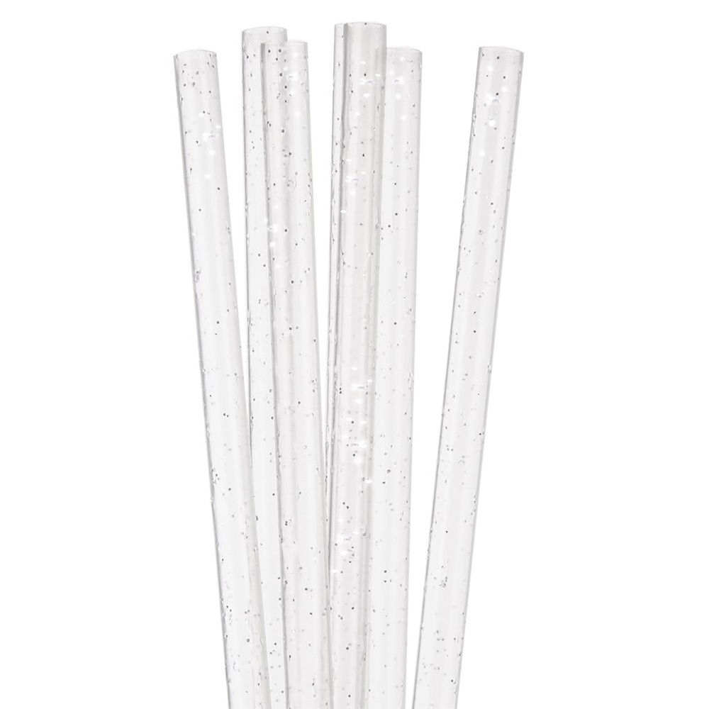 Z BROKATEM - Słomki wykonane są z wysokiej jakości tworzywa w przezroczystym kolorze z brokatem. Przezroczyste słomki efektownie prezentują się w szkle.